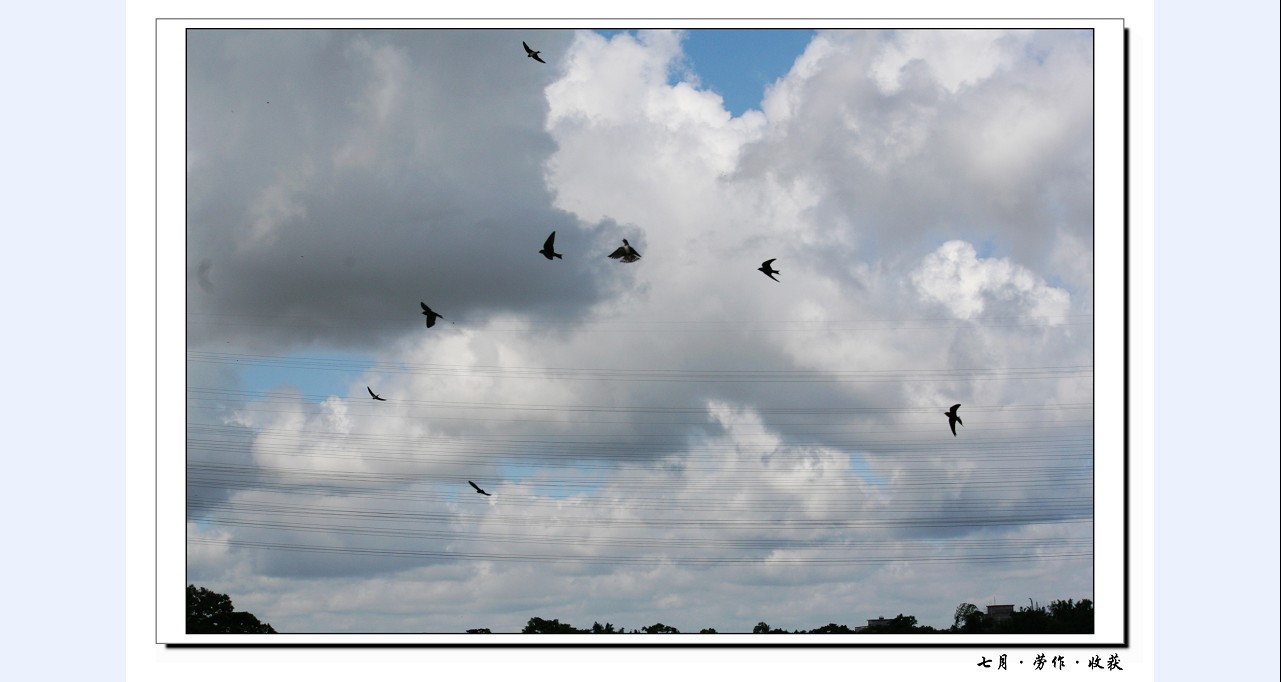 秋风起兮白云飞,草木黄落兮雁南归,家乡的天很蓝,云很轻,喜看稻菽千重浪,爽飒的秋风吹来了阵阵扑鼻的稻香。。。看那可爱的人呐,被太阳晒得发黑的脸上印出了笑容,曾不知淌下了多少汗水。。。