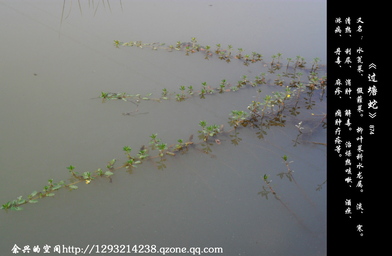 QUOTE(大树上的猴子 @ 2012年10月26日 Friday, 12:19 PM) 农村人管“过塘蛇”就是在江河或者水塘边浮生植物 [snapback]3429660[/snapback] 老家叫水泉仔,一般在山塘泉水的地方生长。性寒,解毒,估计可以起到辅助肾脏排毒的作用,偏方不是完全没有道理。
