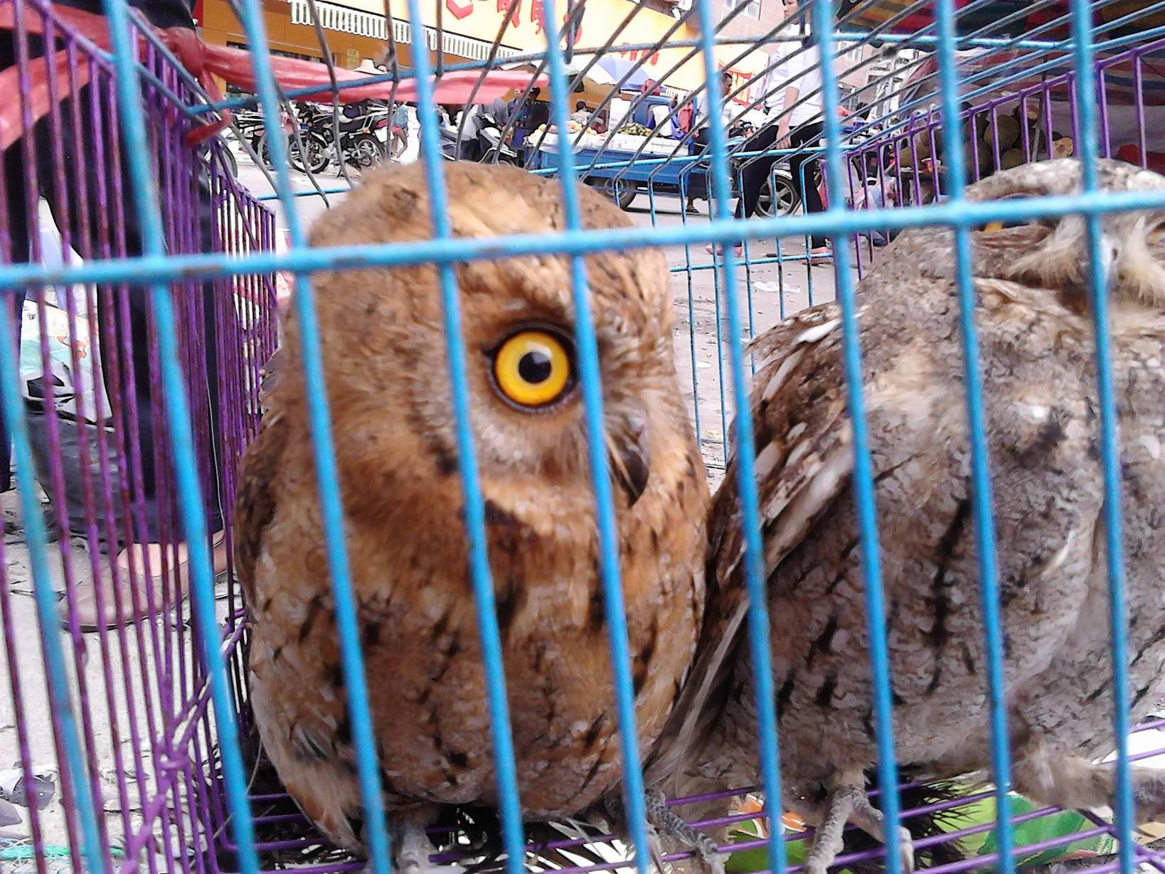前段时间去了水东,在东湖公园卖宠物附近,有好几个小贩在卖猫头鹰。