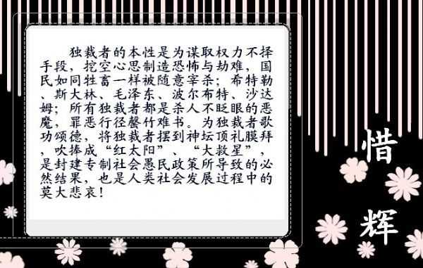 嘴说脑残话者便是脑残人。看你也是穷人弱势分子一族,所谓的改革也轮不到你捞到外块财产好处,先富暴富与你无份,为啥你这么恨毛主席?不学鲁迅精神却学会做孔乙己、阿q。可伶虫!