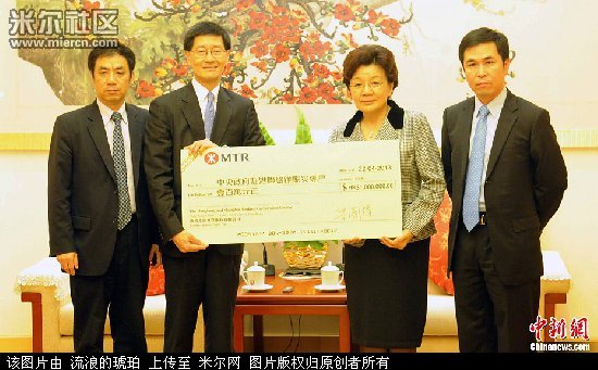 4月22日,香港各界人士及团体纷纷来到中央人民政府驻香港联络办公室,为遭受地震灾害的四川芦山灾区伸出援助之手踊跃捐款,体现出人间大爱血浓于水的同胞之情。港铁捐款。