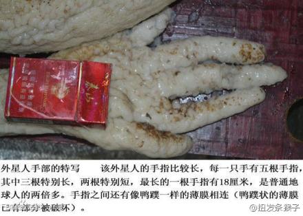 听说市民李某三个月前在黄河边上用电网电兔子时,碰到五个乘着飞碟的外星人,电死一个后,被他收藏在自家的仓库内。该尸体1.9米长,45公斤,头很大,有照片有视频。李某还称,期间有两组专家专程来他家研究过外星人,“他们说这个生物的DNA与地球人的不一样”。