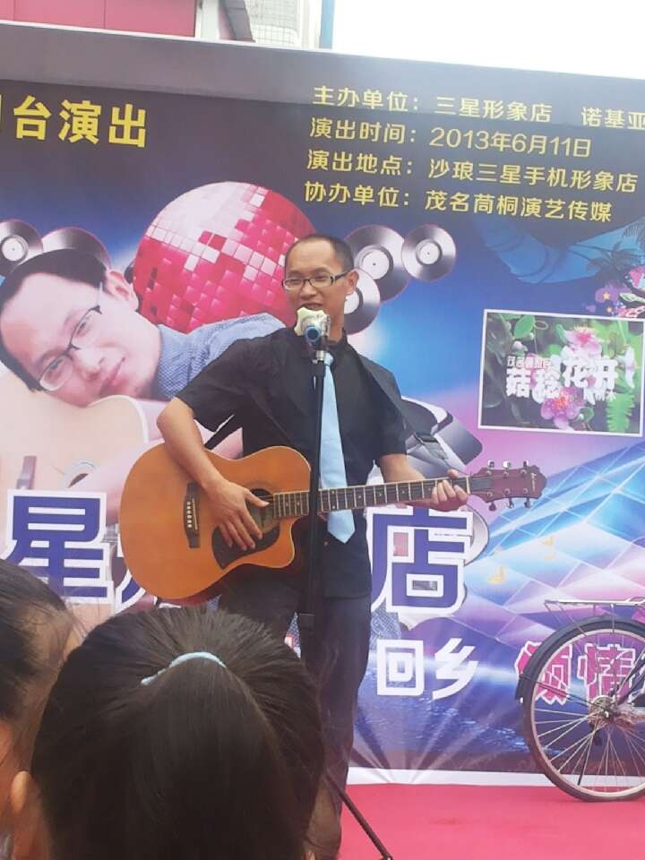昨天中午,电白音乐人西桐木应三星手机形象店之邀在沙琅倾情演出,表演内容包括音乐和书法。广大音乐和书法爱好者有幸亲临现场目睹了一回西桐木的风采!
