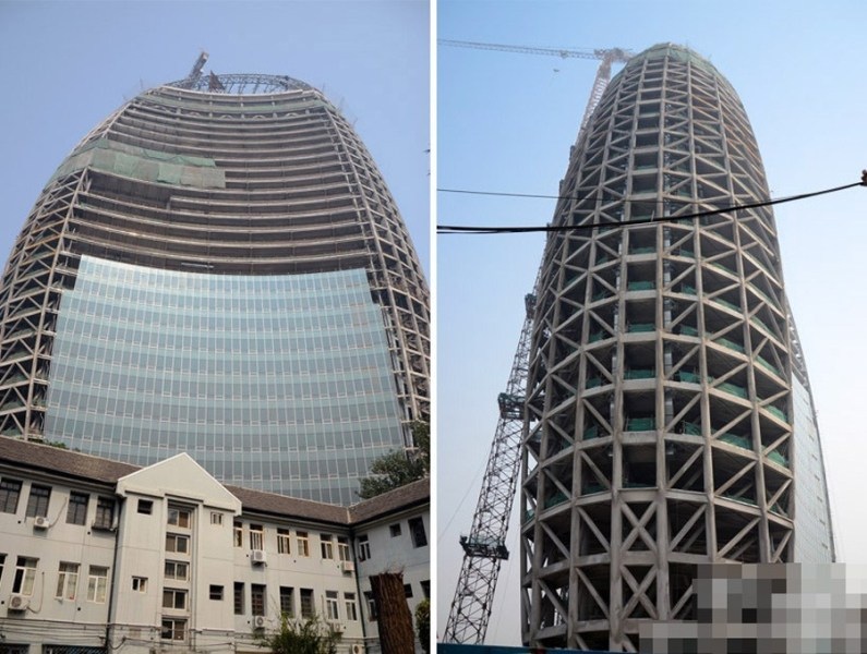 9月21日,北京,在建的人民日报新大楼在网友眼中意象丰富,“电熨斗”、“航空母舰”、“夜壶”等各种匪夷所思的形象一时井喷。