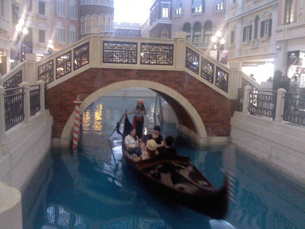 威尼斯有一个人造天空和小桥流水,有外国靓仔、靓妞在做船夫哦!在威尼斯的人造天空底下商铺吃饭不算贵,可以一边听船夫唱歌一边进食。