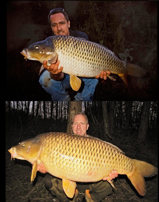 上图:1999年,这位名叫Tim Cosens的仁兄在湖边钓到一条11.8公斤的鲤鱼,鲤鱼兄身体一侧有一个独特的秃斑。