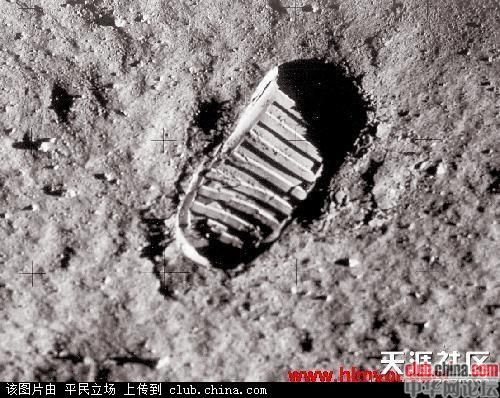 这脚印据说就是阿姆斯壮这位“登月英雄”从登月舱走出时在月尘上留下来的: