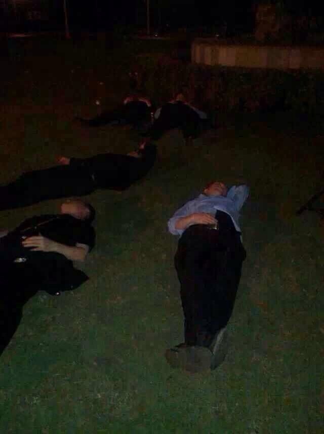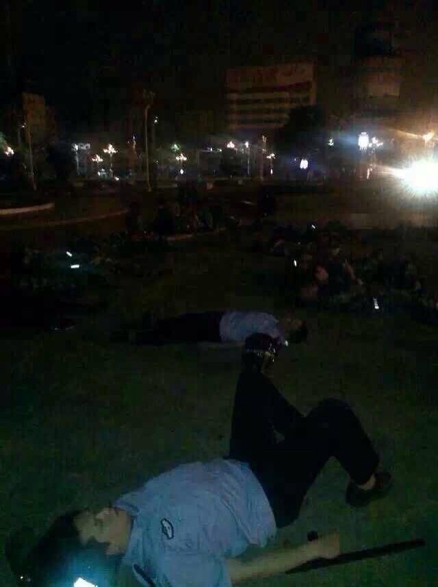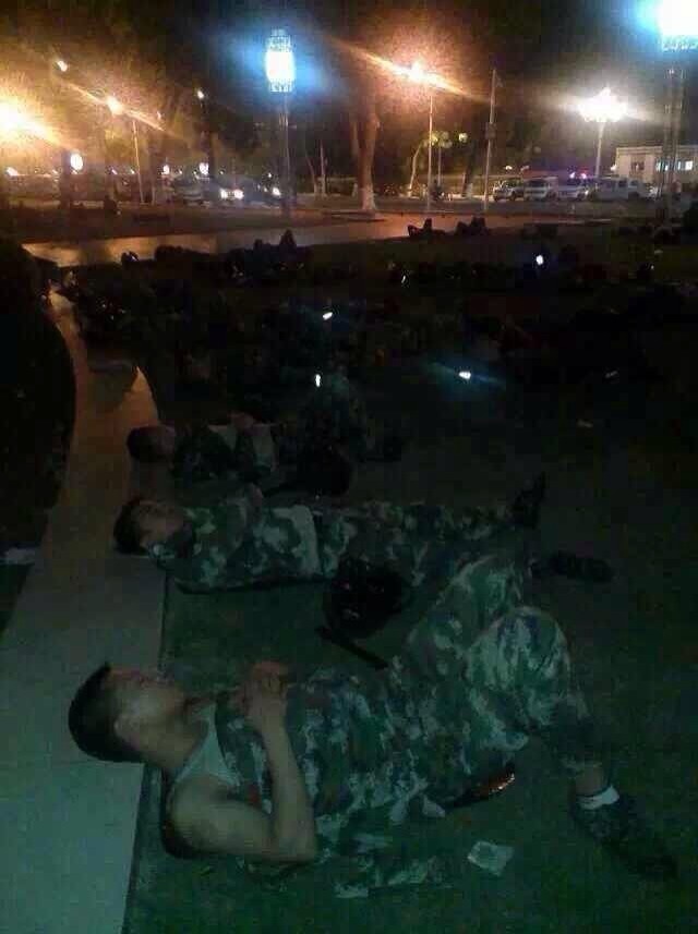 通宵驻守大草坪,席地而睡的干警武警