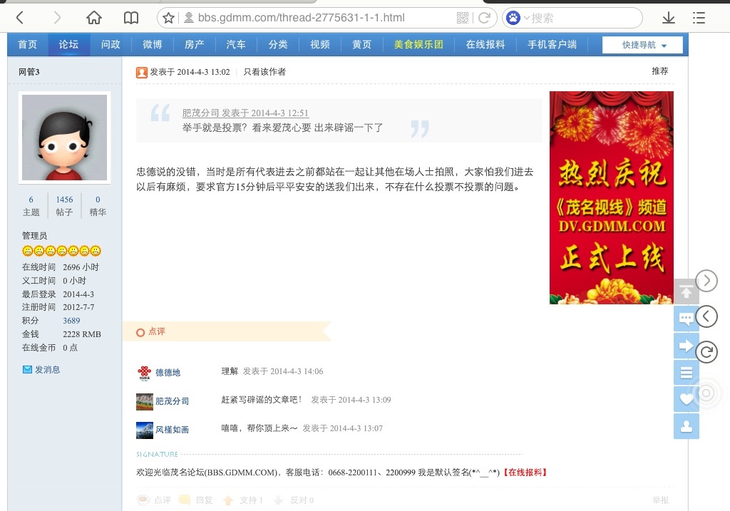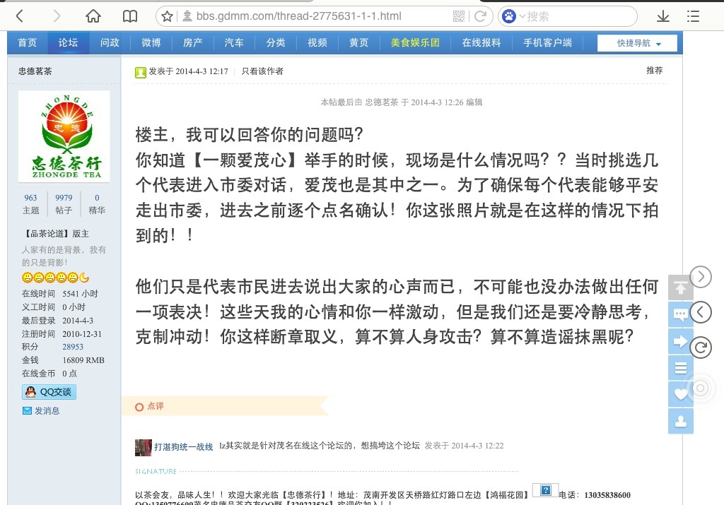 茂名在线 0668 贴吧 3g 新浪 网易 到处充斥着五毛,一直在否认杀死了人。拿着打砸的人转移焦点。唉