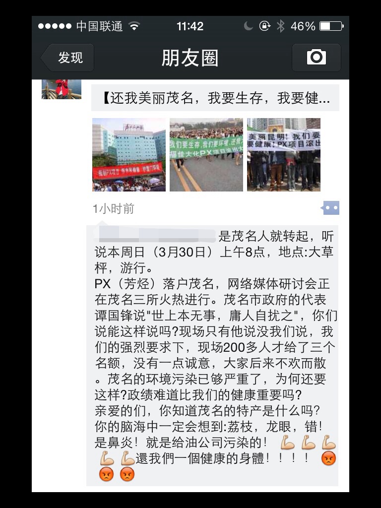 QUOTE(byronroy @ 2014年03月27日 Thursday, 04:33 PM) 今晚7点30分 茂名政府在迎e^召开P於px目网民大会 在茂名的反φ叩雠月 (任何人可以M觯ps:Dl [snapback]3625866[/snapback] 建议在电白的都能积极前往,争取保障我们的权益和生存的环境,为了我们这一代和下一代,,或许我们不专业,但我们曾经努力过,争取过,我们要蓝天碧水,我们不要污染!即使是存在安全隐患的污染源! 09年,就PX项目,发起行动的是我们茂名石油化工的学子们,用视频做了粗略的采访调查。希望能有更多专业人士的介入,无论是本地还是身处外地的专业人士有识之士们,拜托了