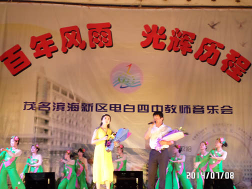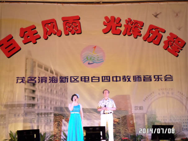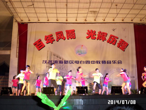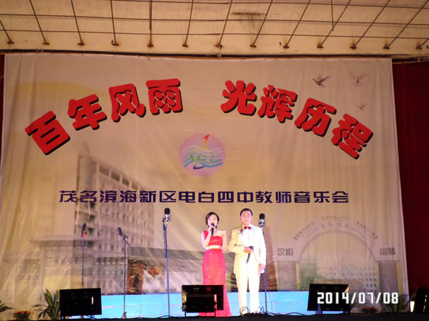 在茂名滨海新区管委会、电城镇政府大力支持下,经过全体教师辛苦努力,电白四中教师自我组织,自我策划的教师音乐晚会,在7月8日中午的雷霆鸣声预祝中,于晚上在电城镇人民公园文化广场成功演出,再现历史悠久、英才倍绲墓爬涎校深厚的文化底蕴,展现出四中人新时期的精神风貌,放飞着四中人美好的梦想!