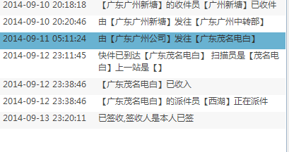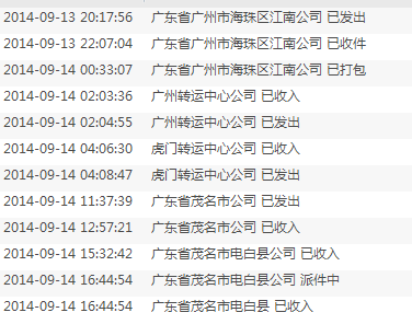其他不说。~同一天拍的件。~同一天走货!~看看圆通(已经显示在本地)跟申通~ 申通虽然显示了发往电白。~但是到15号依然还会是这样显示。~件起码到晚上10点左右才会显示西湖派件!(看另一张截图的另外一笔交易~)