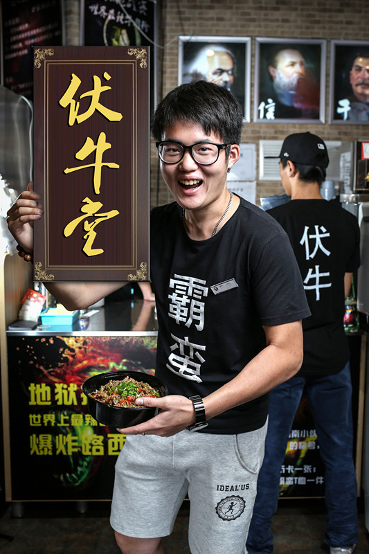 伏牛堂的线下店做为一个入口能聚集一票人,通过挖掘人群的需求来实现我们的商业化。比如来我这吃粉的女性多,我们可以考虑跟聚美合作。店里顾客80后、90后居多,所以我们在和动画片《魁拔》谈合作。可能我店里的湖南人多,就卖和湖南相关的文化衍生品,我们“霸蛮”系列的文化衫就卖得不错。未来伏牛堂可能是一家服装店、一家大数据公司,或者是一家自媒体。
