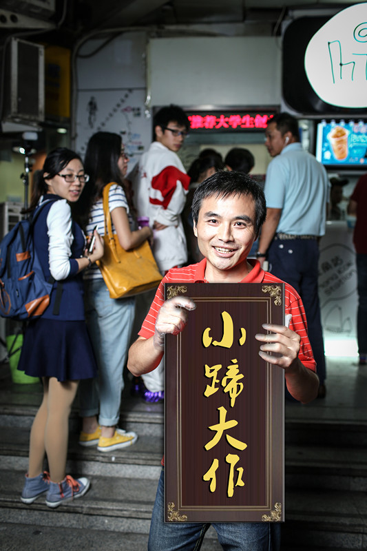 我们五道口店面大概三平米,只有三名服务员。之前还有“小蹄大作”的牌子,但城管觉得我们这个招牌不合格,拆掉了。我也想知道没有招牌的情况下会对我们营业有多大影响,结果发现大家照样排队。我们团购量很大,在大众点评是五星店铺,海淀区排名第一。