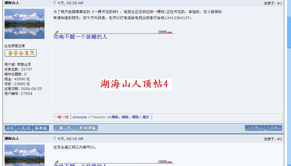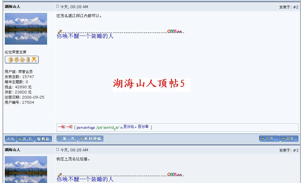看看“道德大师”“湖海山人”在论坛上的自慰!
