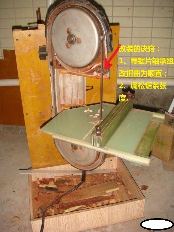 和改装完成图:靠山可拆卸,亮点是锯下有承木粉的装置。
