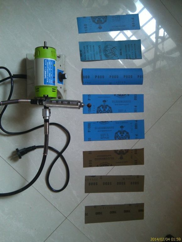 为节省开支,选用二百多元的国产打磨机。这种机器350瓦,转速最高10000。重8斤,噪音低,可用于陋室之内 可免于被外人投诉,但要是家中吵架王拿去丢的话,那就无计可施,毕竟打磨的时候粉尘不可避免,不适用于居室内使用,我是在大露台外使用的。因此,用至今日,家中吵架王还没见发烂渣。