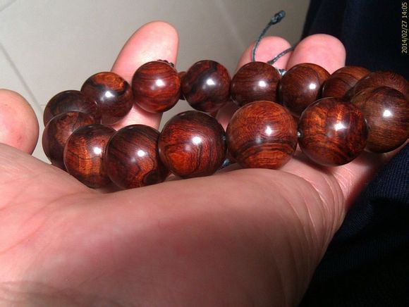 为了能把海黄的美留在身边,我在两年前萌发了自做海黄佛珠的念头,为了实现这梦想,在不断思考做佛珠的方法。目前,加工佛珠的最流行的方法是水磨法(凹槽砂轮加水磨),使用水磨法,优点是节省木料,加工速度快,成本低廉,淘宝上的木质佛珠绝大部分都是用这个方法加工出来的,但是它有个最大的缺点是木料经水浸湿,后期容易开裂。经无数次权衡利弊,最终决定使用台钻、佛珠刀方法,这种方法避免了上述的缺陷,但加工速度慢,易学难精,我经过长期琢磨,终于圆了一个梦想,以下为海黄、紫檀佛珠详细制作历程。