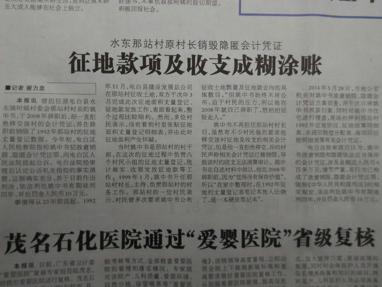 水东镇那站村那事上报纸了