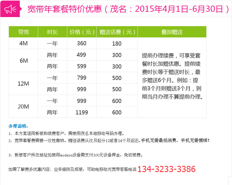 2015年第二季度中国移动光宽带优惠活动,七月起再无此优惠! (1人在浏览)