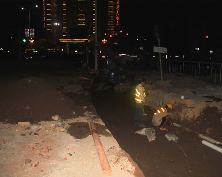 晚上加班加紧施工
