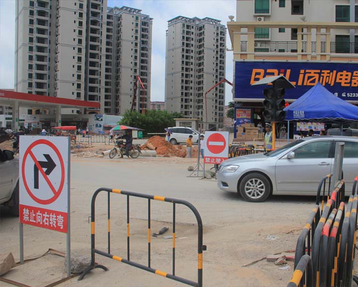 造成很大不便。在水东加油站至中心台段,大量的机械设备和施工人员