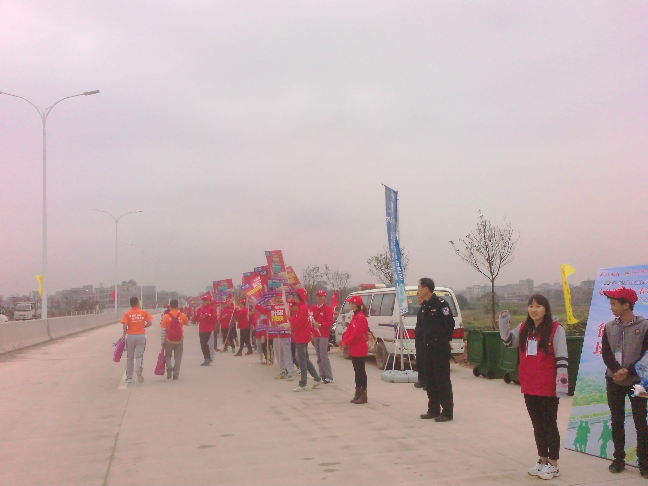 今早,我兴奋莫名,起了大早,拟在本次徒步节中当个排头兵。谁知,“莫道君行早,更有早行人”,当我八点赶到市民中心时,发现我已落后一大截了,比我更兴奋的大有人在,他们早在七点二十分左右便在包茂大道上散步了。