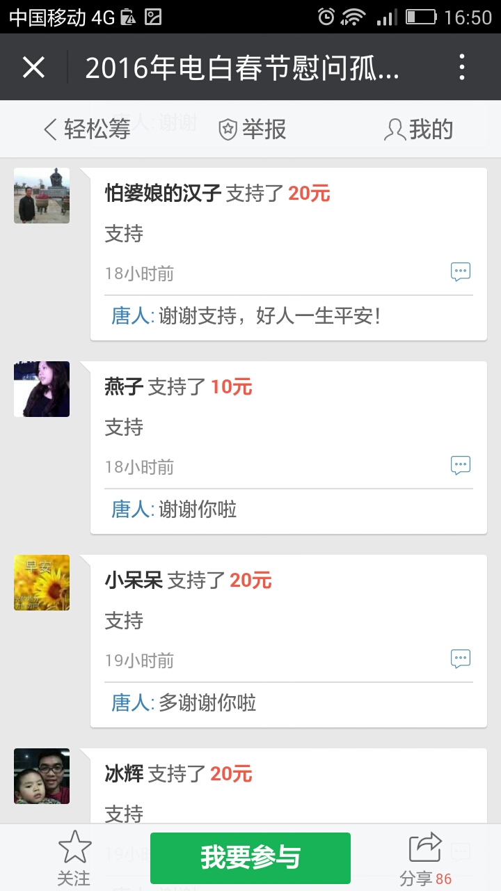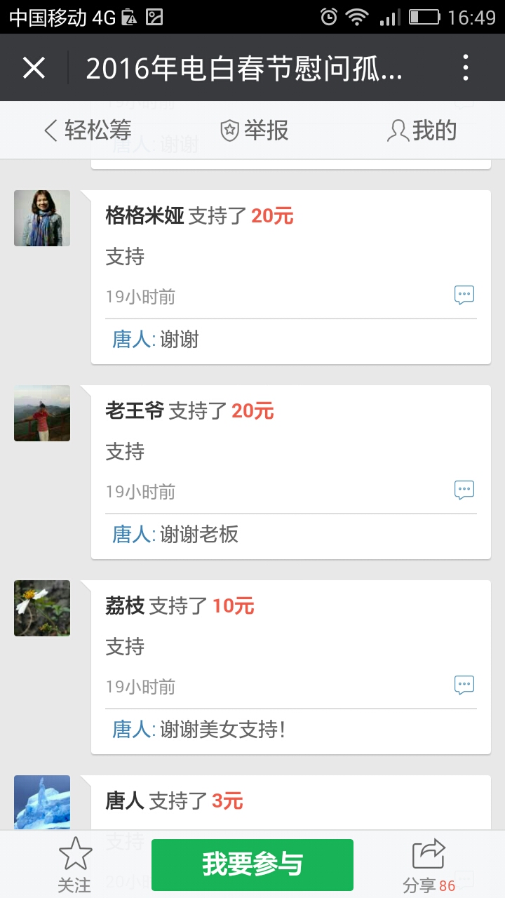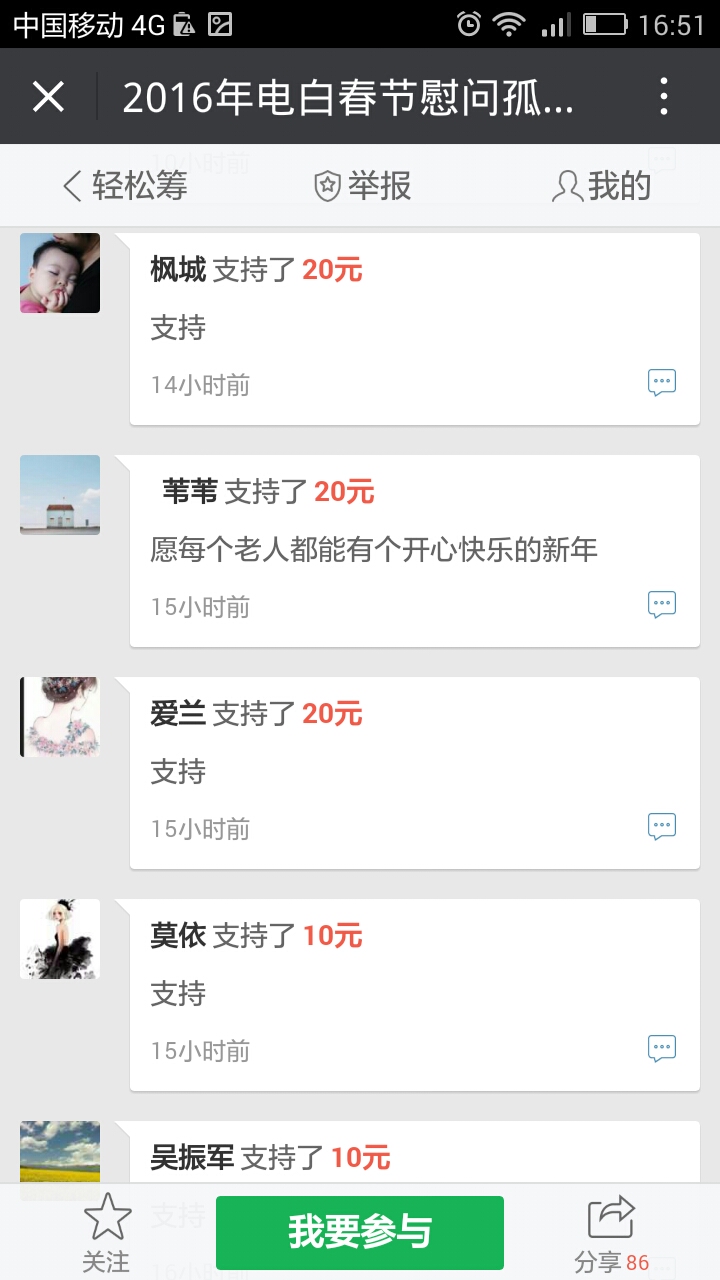 把去年慰问的情况、人员图片发上来,今年准备慰问情况作个规划,相信能筹到可观的善款。