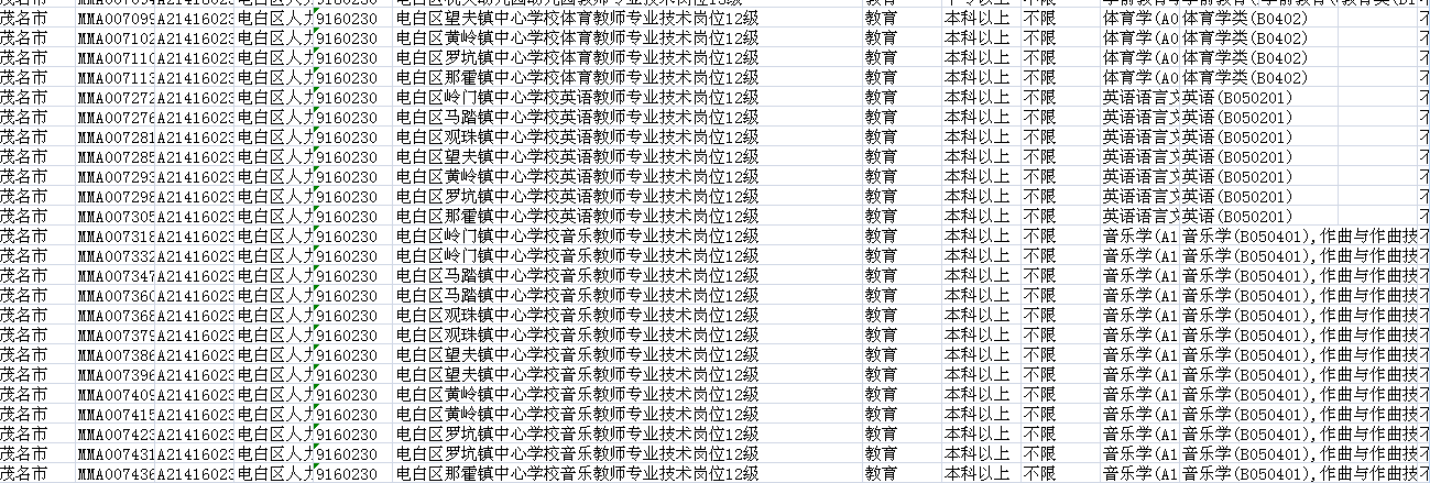 现在电白教师绝对超编。因为许多学校一个班十人也需要三位老师。如果能把三个班拼在一起,教师绝对是绰绰有余。另外大学毕业生想一出来就拿高薪,还要在城里当老师不想去山区,你还是别当教师了。陈村水东旦场林头都不欠老师。望夫马踏黄岭那霍才欠老师。