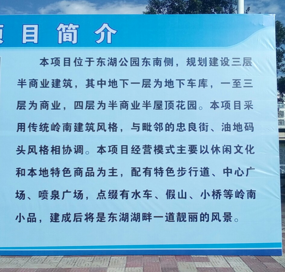 今晨与伙记还是去那边干点手尾工,途经位于海提路立起一牌匾,看简介此特色商业街建成后会是何景像,个人也有期待,期望如简介所言能为东湖再增添一梅靓丽风景!! 浏览附件352308浏览附件352309浏览附件352310