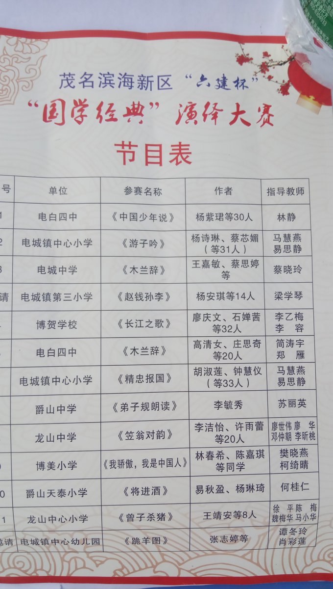 湖海山人 荣誉会员 荣誉会员 注册 2006-09-25 消息 25,094 反馈评分 766 点数 191 2016-12-30 #1 茂名滨海新区“六建杯” 国学经典演绎大赛今天在洗太夫人故里景区举行。 最后编辑: 2016-12-30