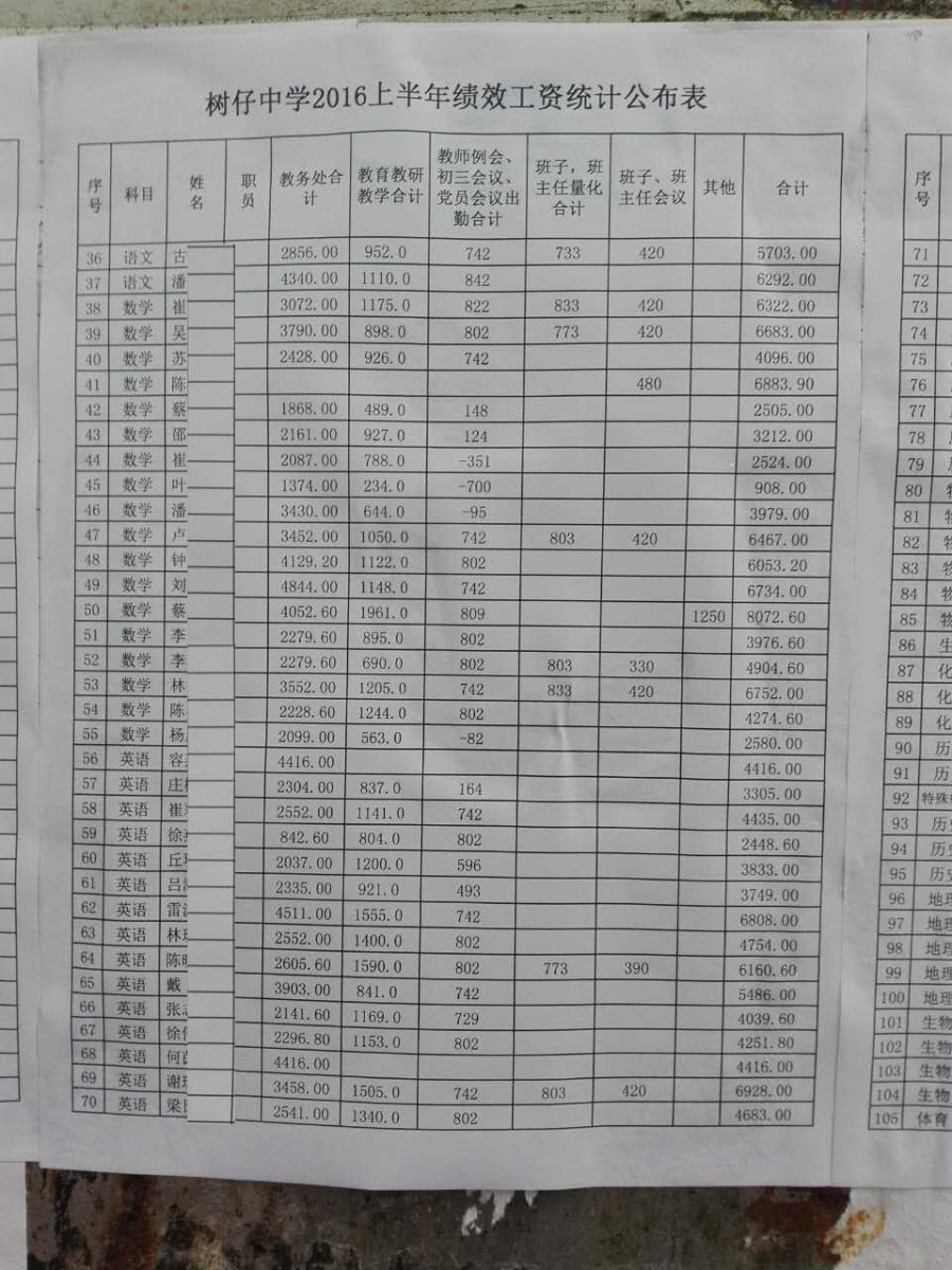 有关树仔中学绩效发放的问题