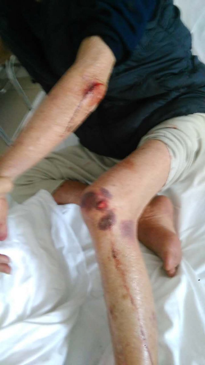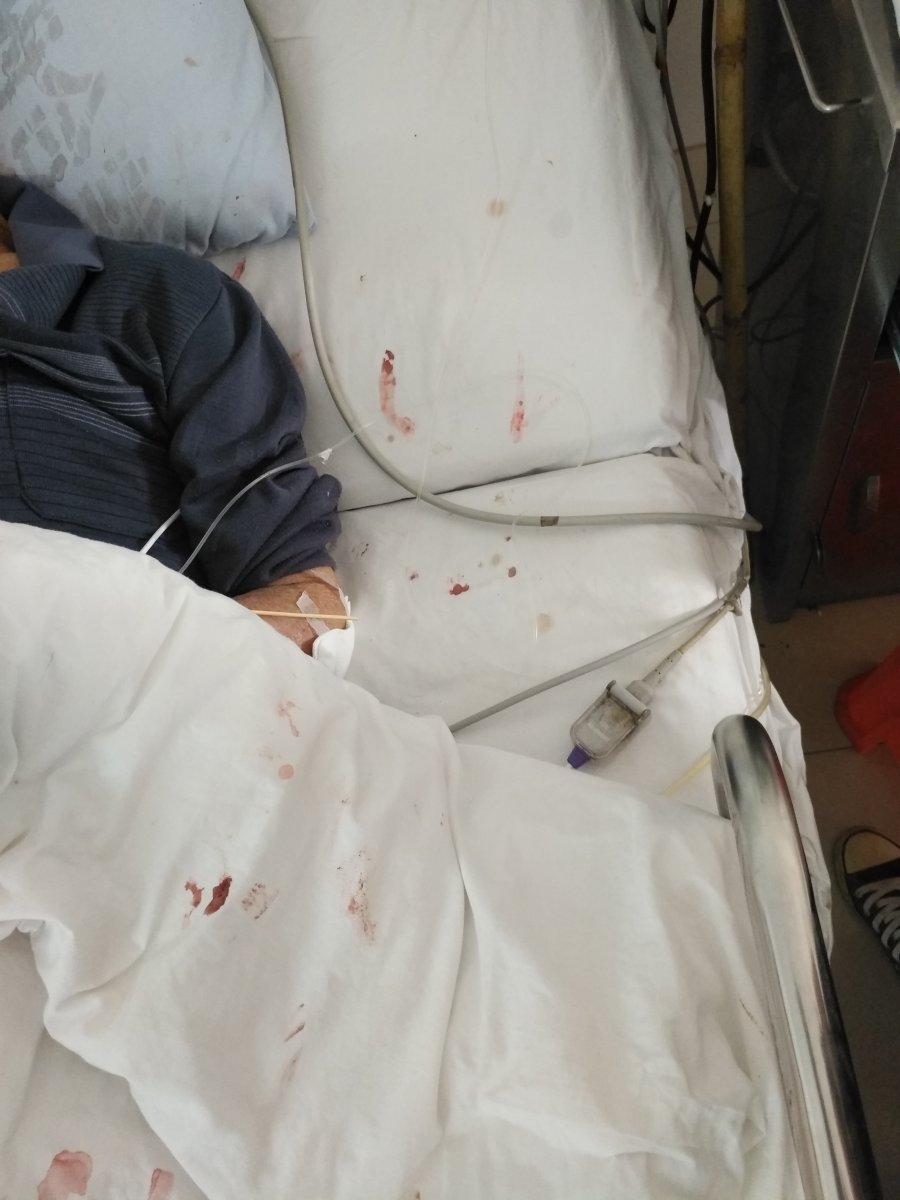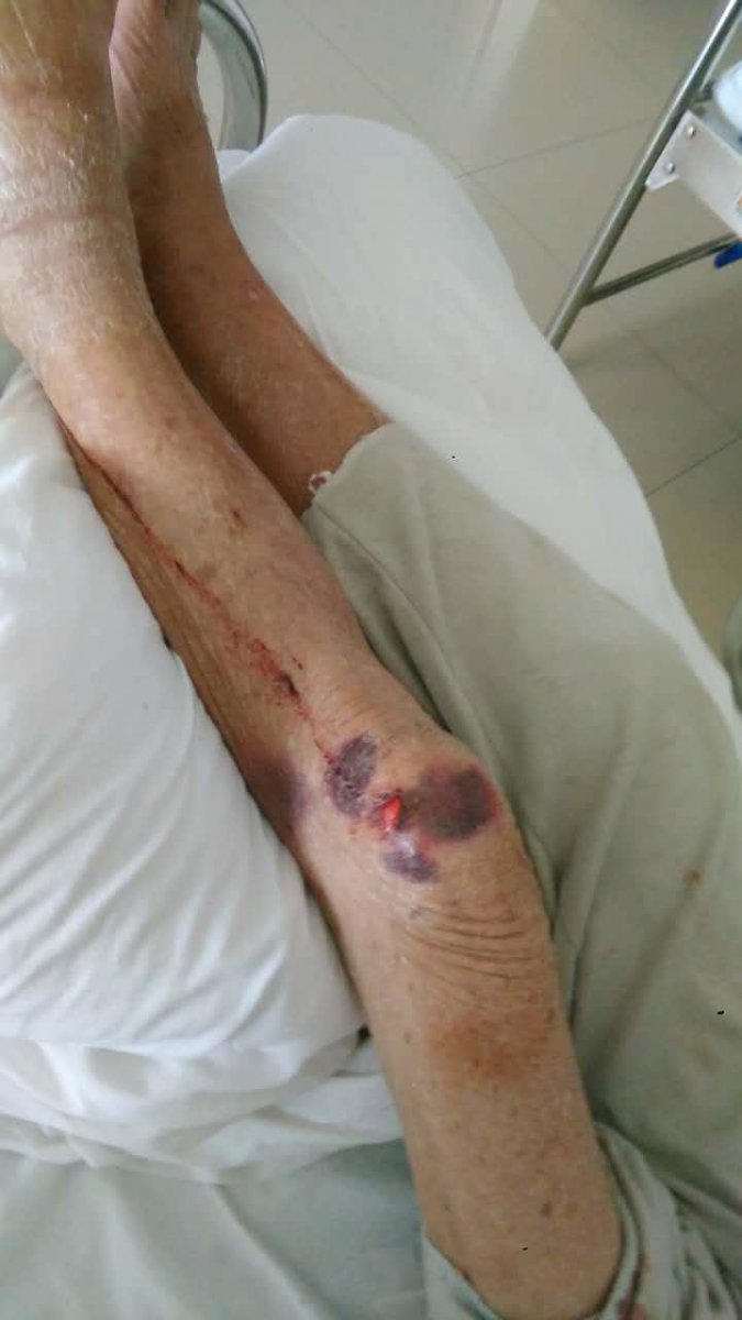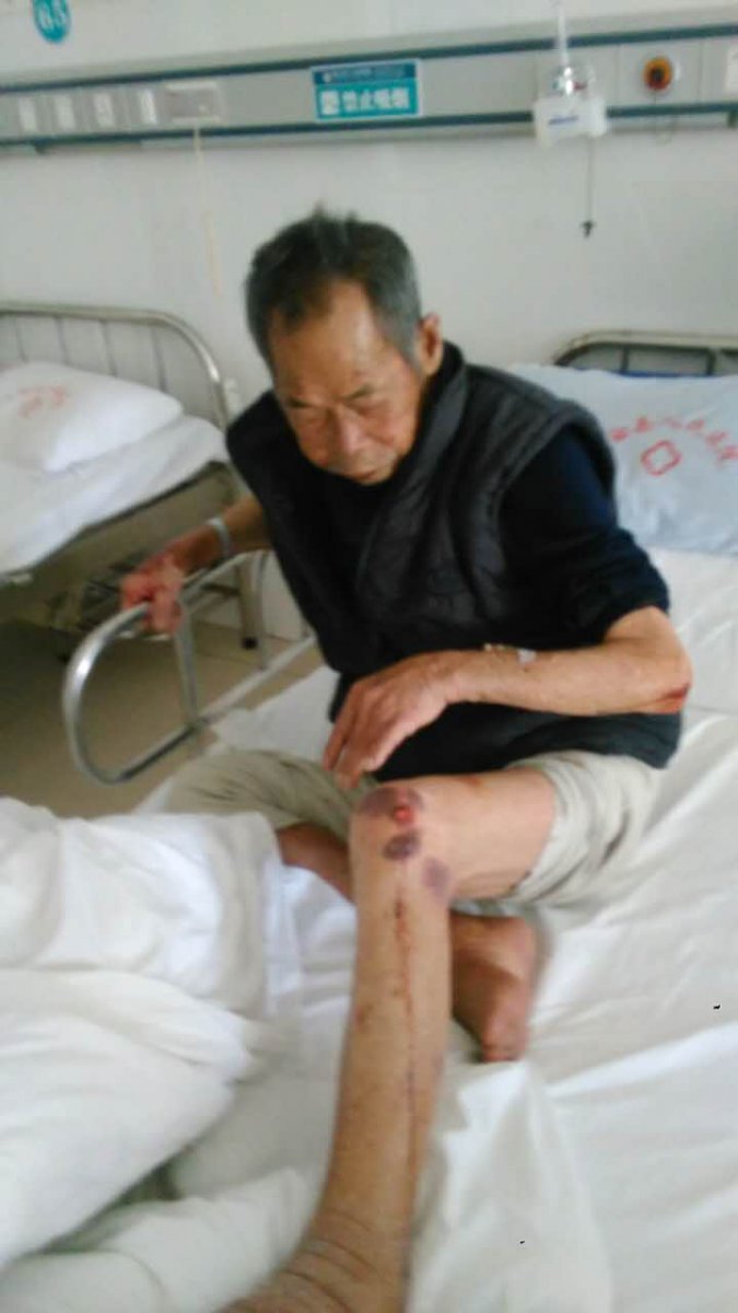 老人3月27日因双脚浮肿在电白区人民医院综合内科住院,一切生活都能自己自理,老人有事或需大小便会按吁呼铃叫医护人拨开吸氧管及针头等。4月5日1点多时,当班医护人员怕其按铃吵烦影响休息,就将呼叫铃按钮用胶布高高挂起并息灭病房的照明灯,至使老人摔倒伤成这样(附照片),早上7:00前医护人员要进行测血压体温却视而不见。8:10亲人送早歺发现全身是血且扒在另一张病上,四次到医护办公室叫都无人来处理。摔倒后这几天来老人的病情日益加重,现己生命垂危。院方却一直在推搪而没有任何处置方案,投诉却石沉大海。公理何在!国法何在!目前,老人生命悬于一线,恳求良知!!