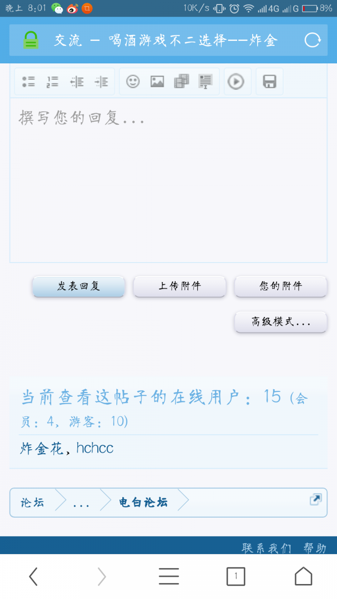 炸金花 小学五年级 注册 2017-05-21 消息 305 反馈评分 36 点数 11 2017-06-14 #17 15个会员,都没有出酒的,不玩了,找人炸金花去 附件 Screenshot_2017-06-14-20-01-53-0320660136.png 158 KB · 查看: 547