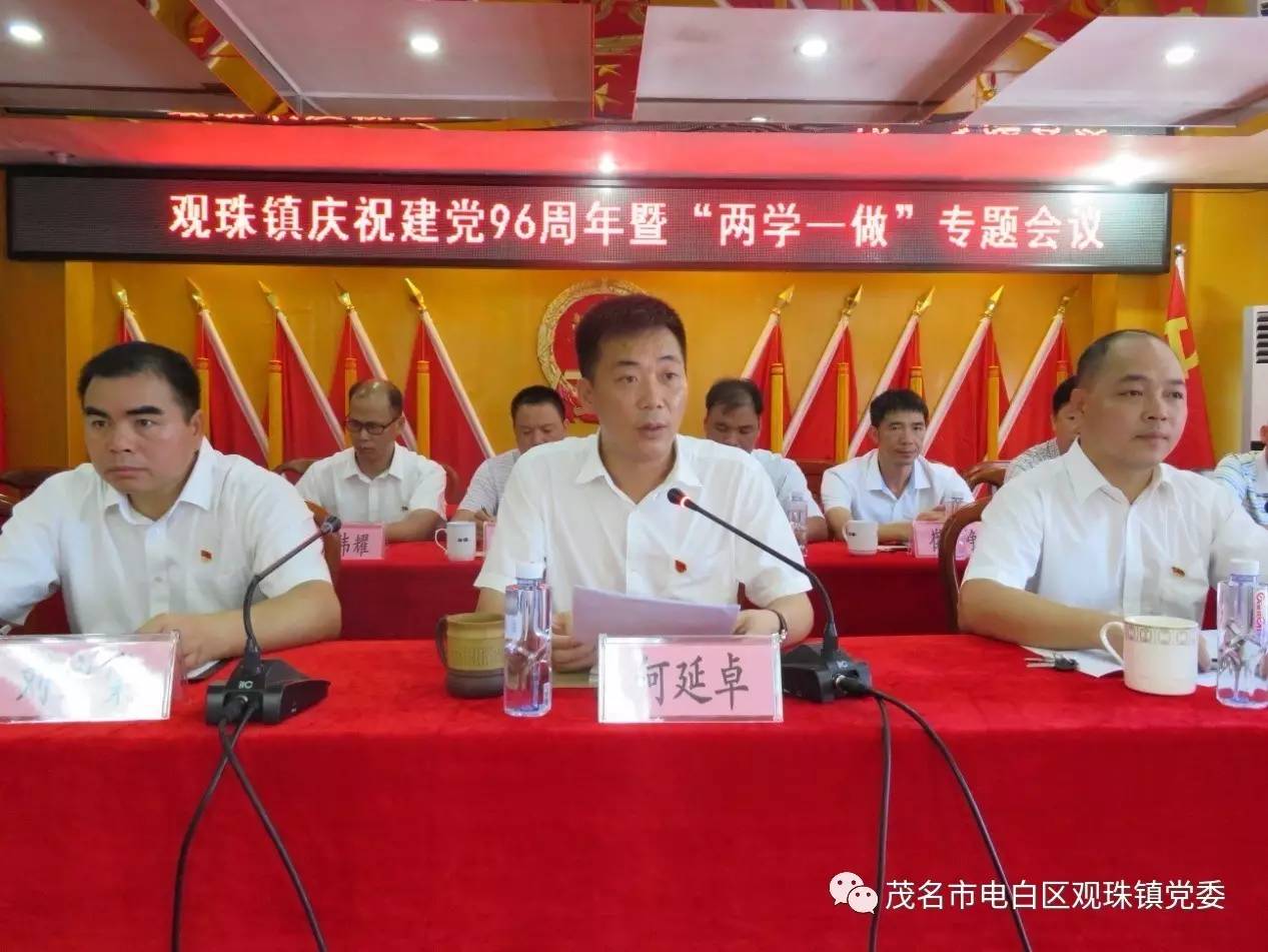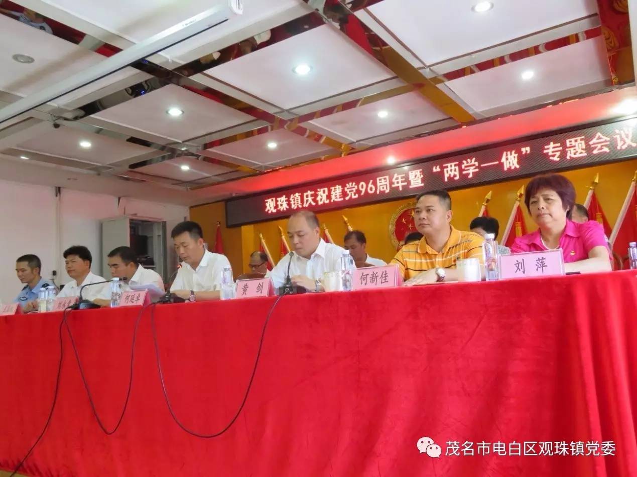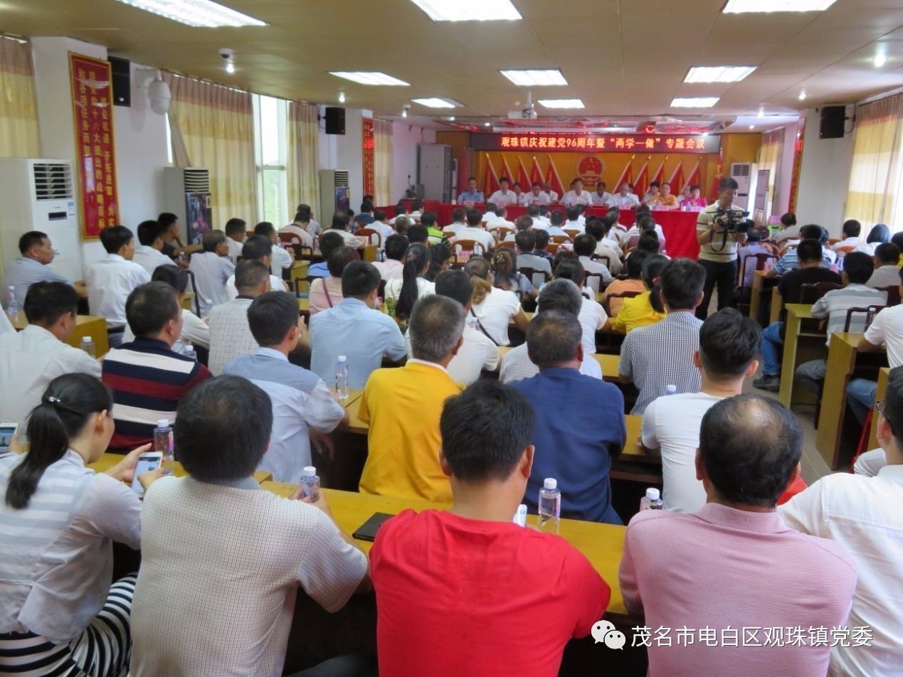 上午9时30分,观珠镇庆祝建党96周年暨“两学一做”专题会议在镇政府三楼会议室召开,参加会议的人员有镇中层以上干部、各村(社区)“两委”干部、镇直机关负责人等100余人。