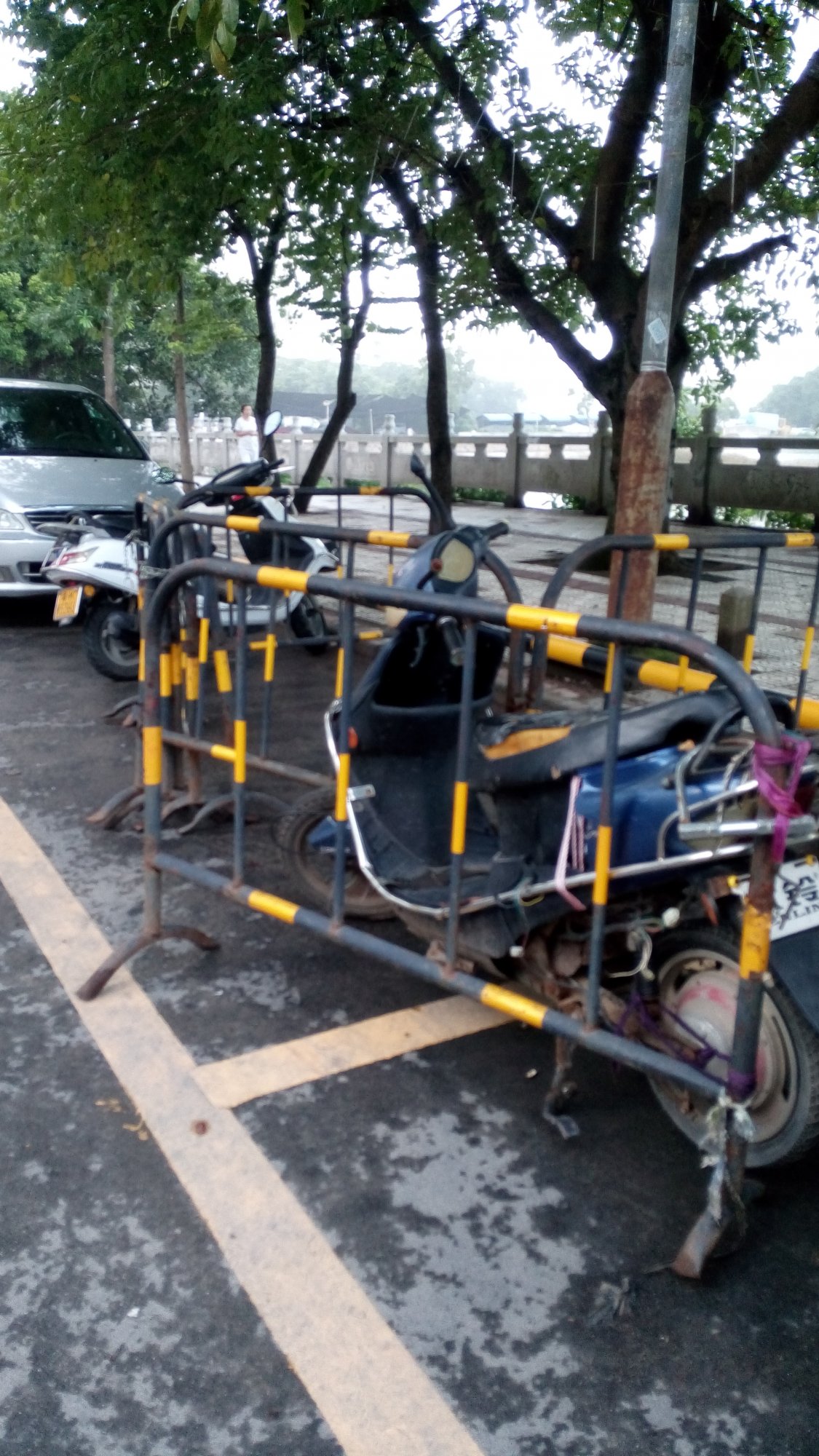原来水东的马路停车位是可以这样占有的,早说咯……下次我在自家的门前设卡……车开过对路面会有一定的磨烂,这是我的门口、我的路……我得收费……不然不让车路过…… 如果非要说不是,这是某些部门的不作为吗???你在人行道上安装都已经很有问题了,还有人敢公然在大马路上安装这个???这也只有大电白有这特色了……公路是公共的吗?那这算破坏公共财物吗?那就是犯法的了咯