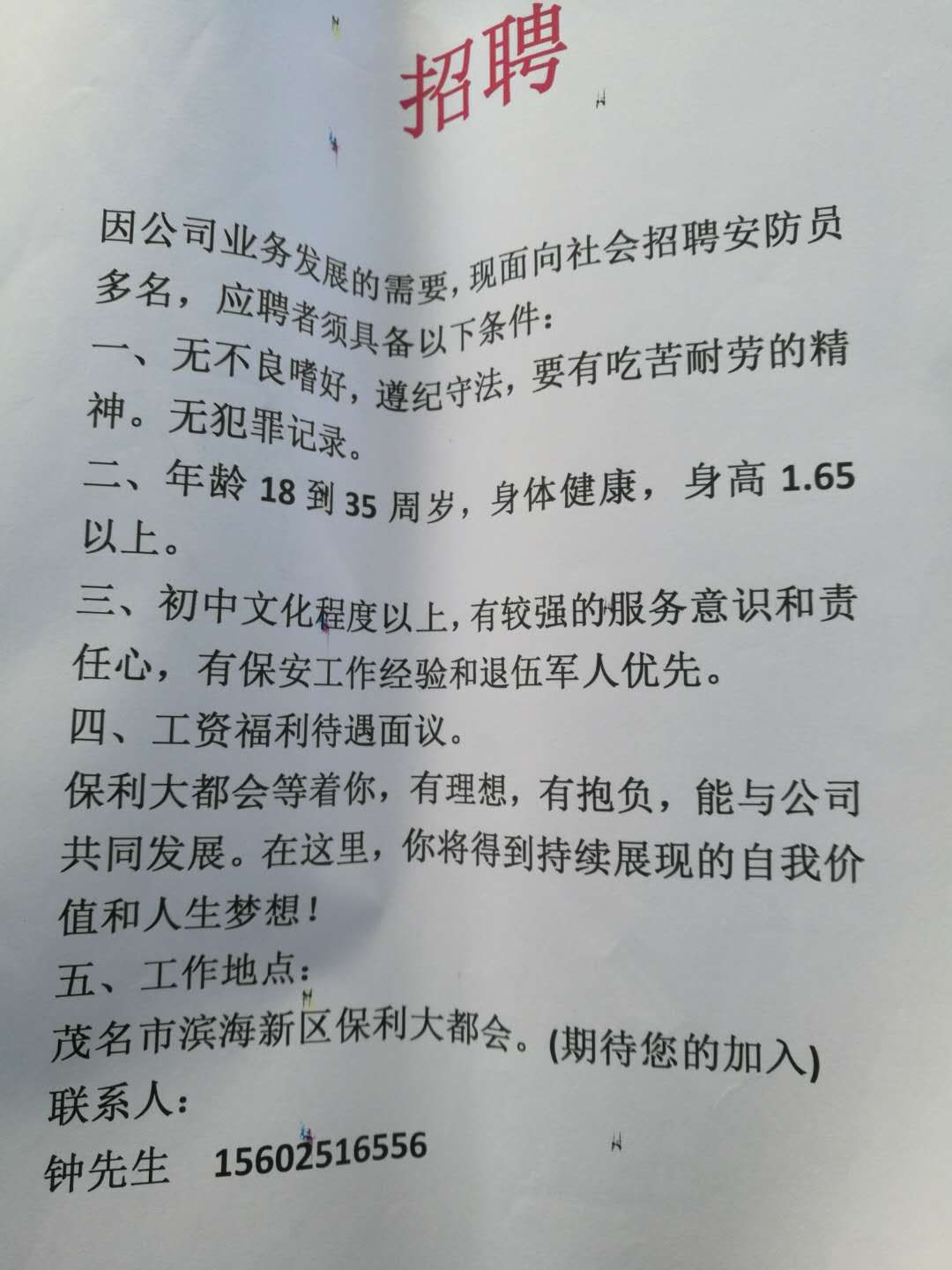 爆料 央企排头兵保利大都会物业招聘