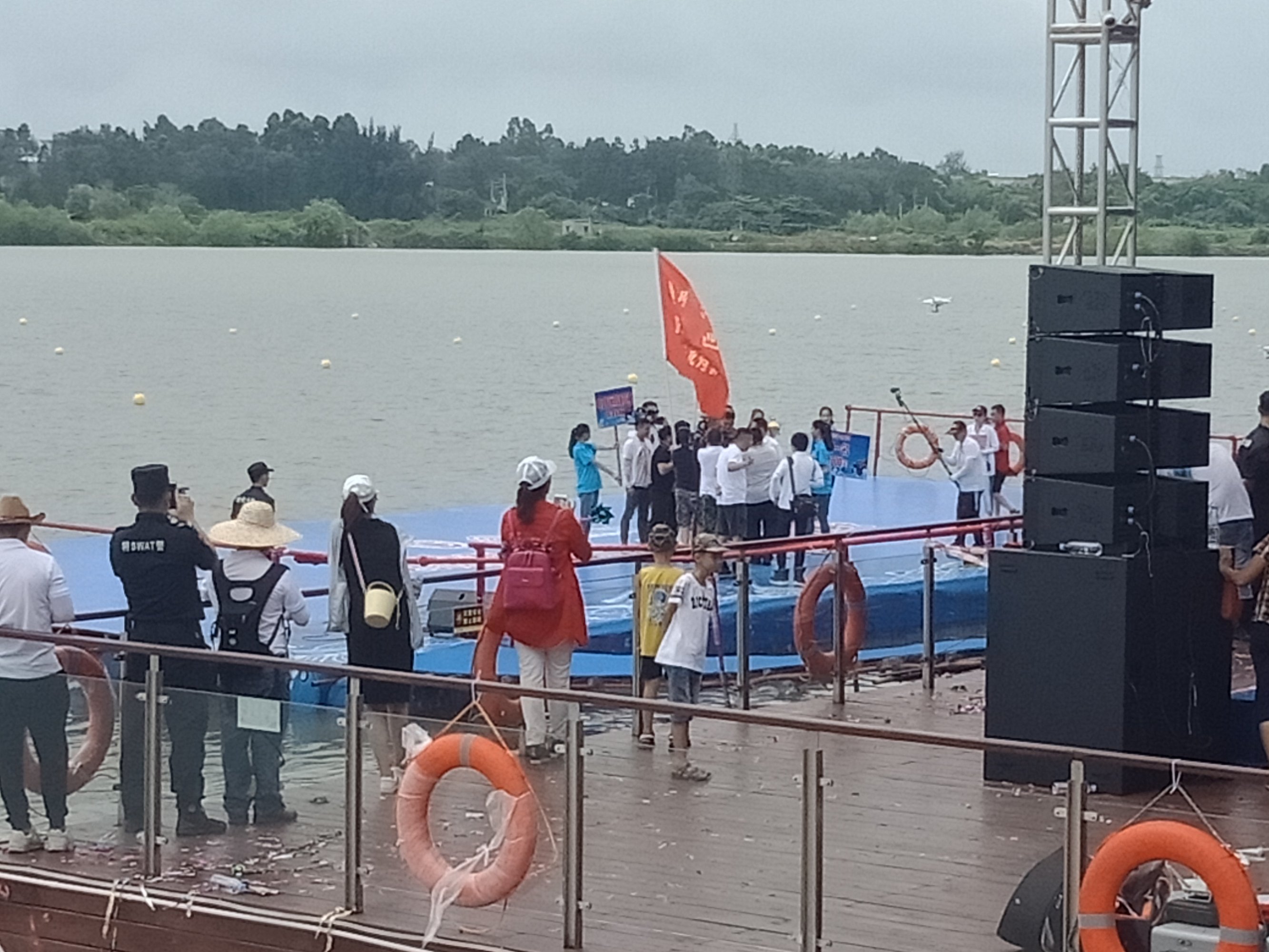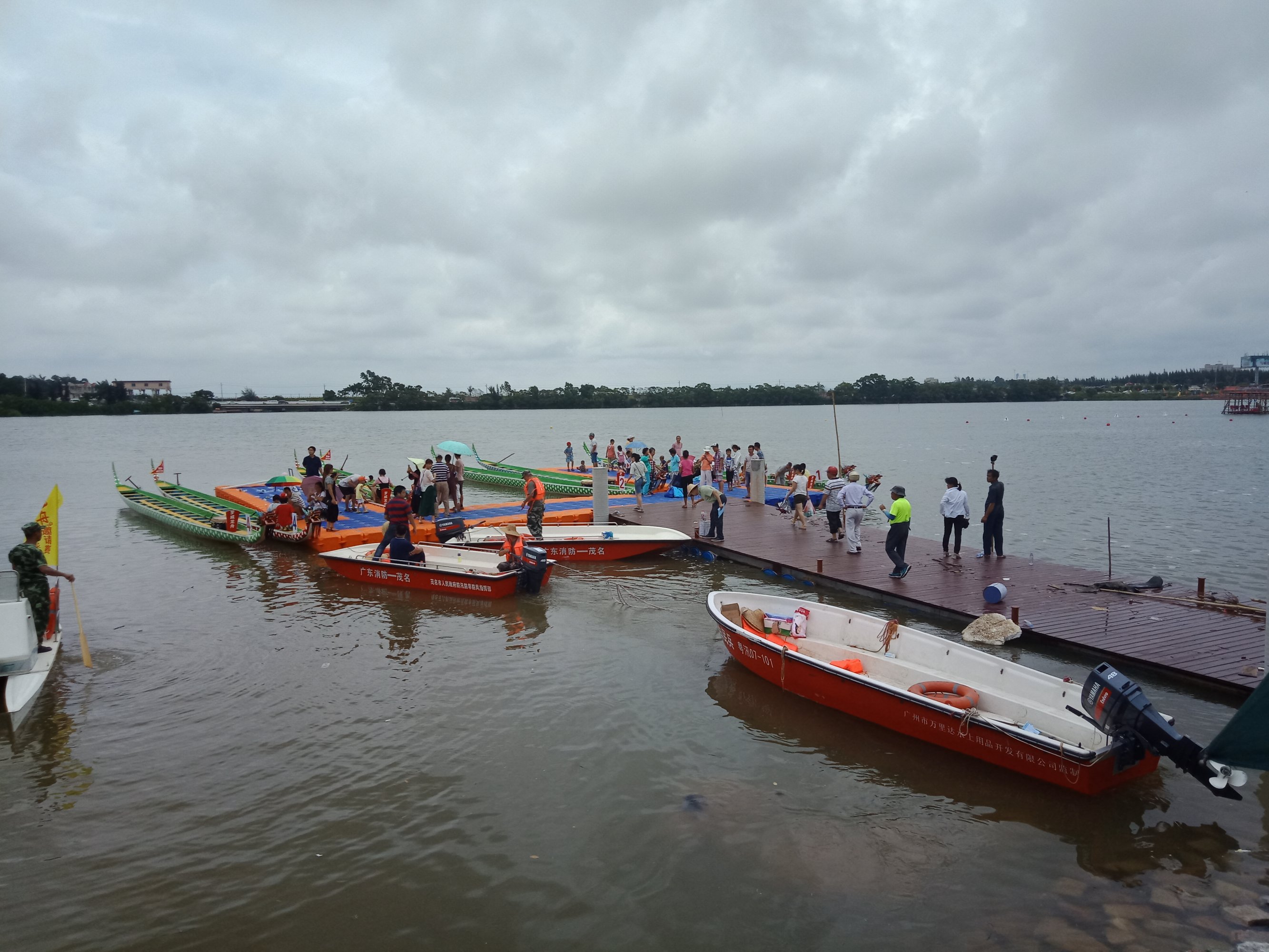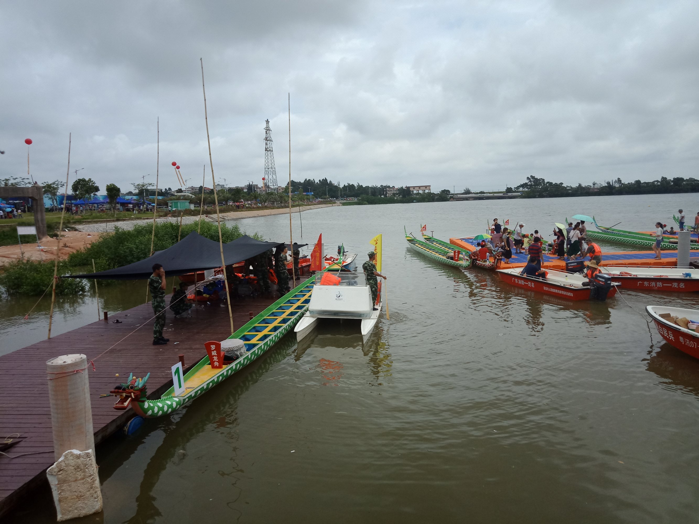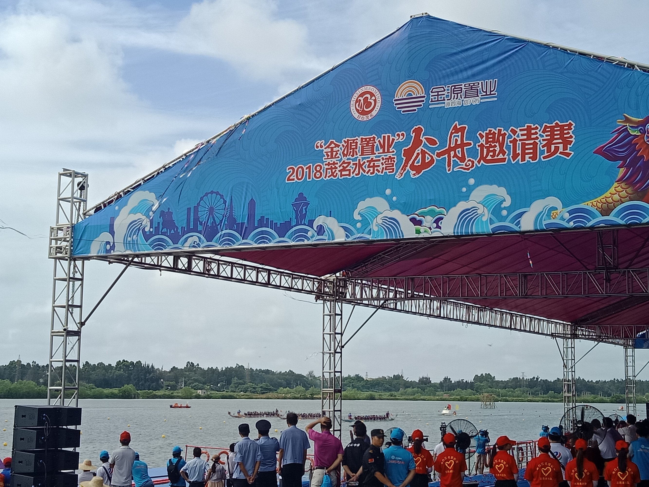 金源置业~2018茂名水东湾龙舟邀请赛~今早,在外面吃了点白粥送菜头,后驾摩向桥头方向墨胶,水东湾歌美海进发~哇塞,车都停到这边,貌似临时管制,车已不能进入公园,只好在附近稳个地方放好摩托~人算挺多,不过有公安交擎安保,志愿者等工作人员 分段维护进出,还行吧,需今天天气还好,太阳不晒,但声说声辛苦啦!因或许人太多,分段管制,也没能更进一步接近中心地带观看台(将就吸吸、),但在四周看去,能看到龙舟与能站人的地方都貌似见站满人?或有空中无人机更清楚清晰?貌似9点钟左右才开始~直至接近12点~
