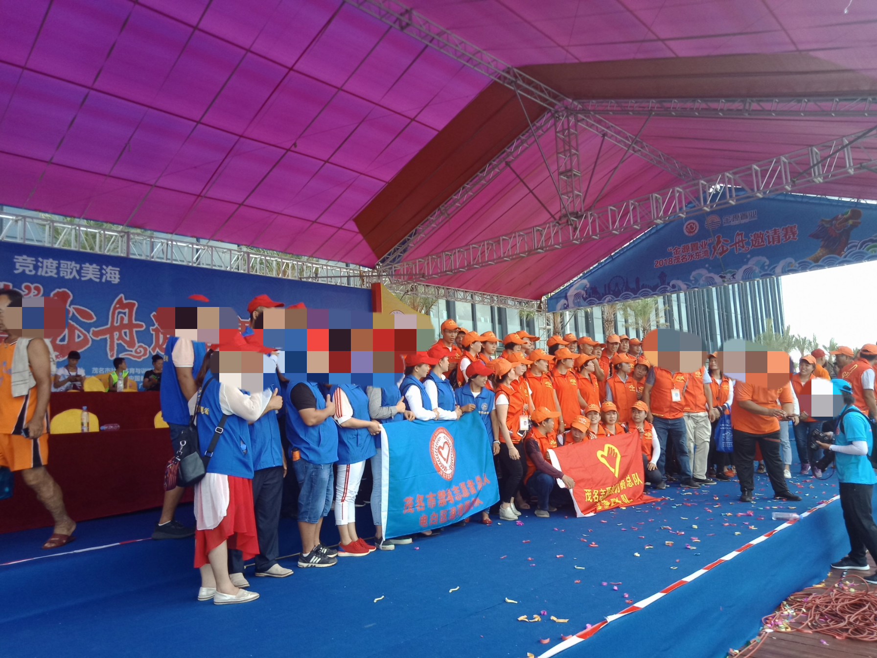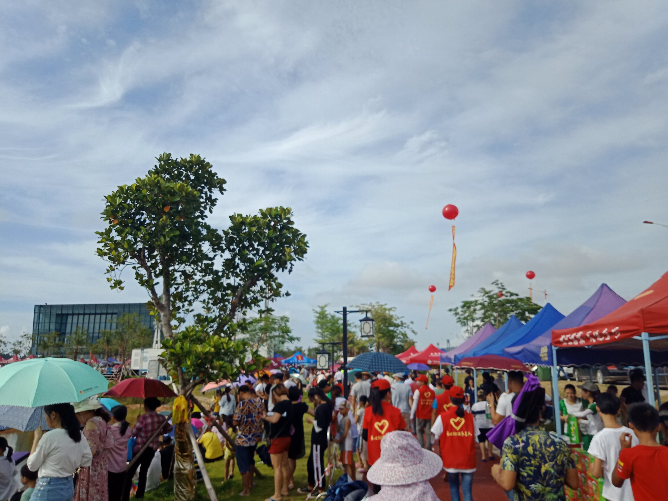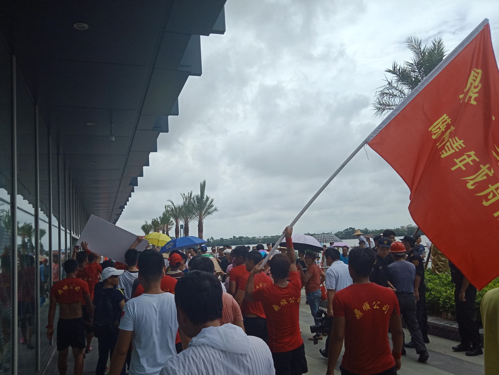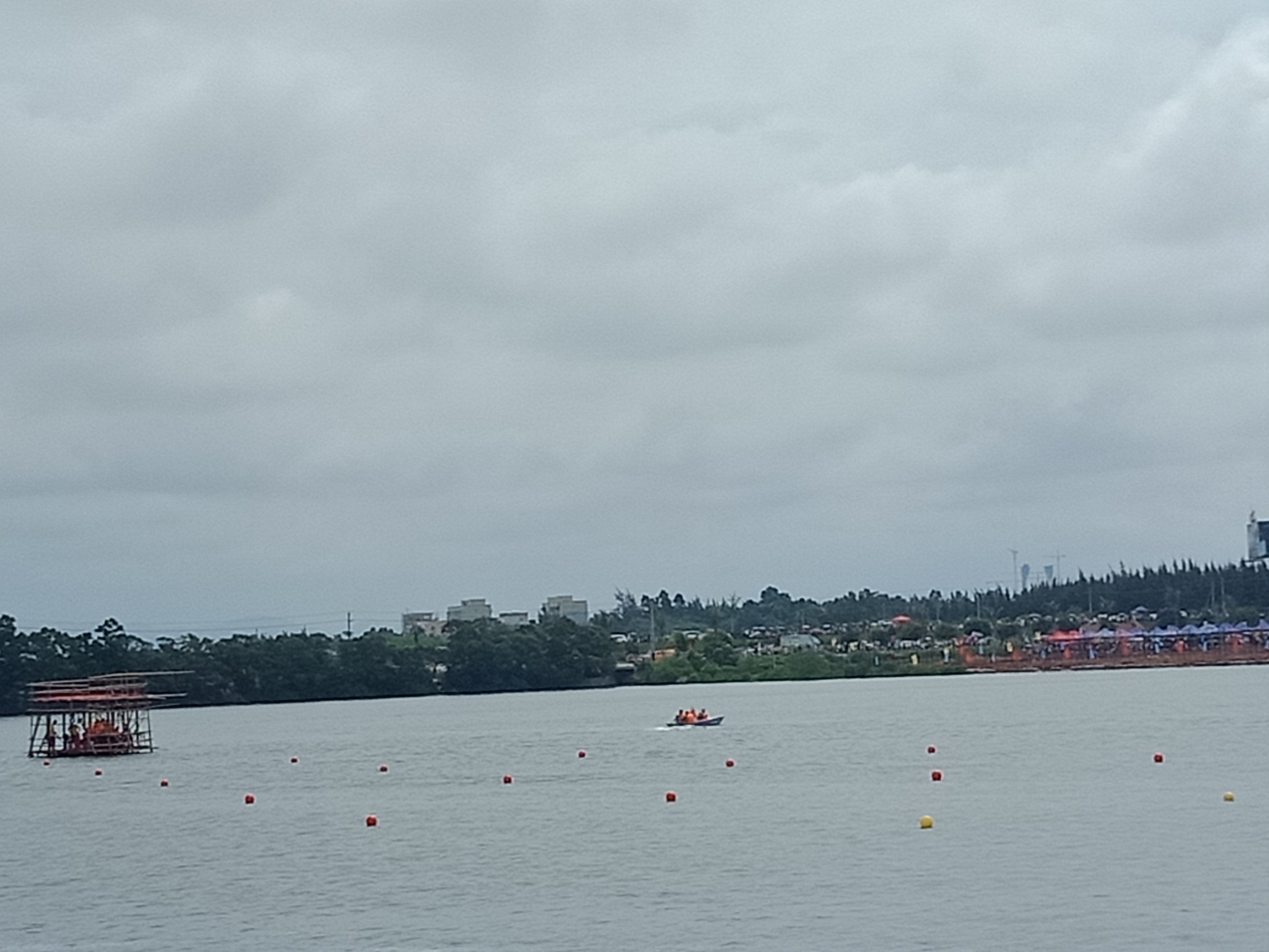 金源置业~2018茂名水东湾龙舟邀请赛~今早,在外面吃了点白粥送菜头,后驾摩向桥头方向墨胶,水东湾歌美海进发~哇塞,车都停到这边,貌似临时管制,车已不能进入公园,只好在附近稳个地方放好摩托~人算挺多,不过有公安交擎安保,志愿者等工作人员 分段维护进出,还行吧,需今天天气还好,太阳不晒,但声说声辛苦啦!因或许人太多,分段管制,也没能更进一步接近中心地带观看台(将就吸吸、),但在四周看去,能看到龙舟与能站人的地方都貌似见站满人?或有空中无人机更清楚清晰?貌似9点钟左右才开始~直至接近12点~