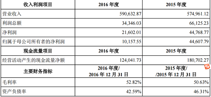 中国生物2015年和2016年收入利润情况(单位:万元)