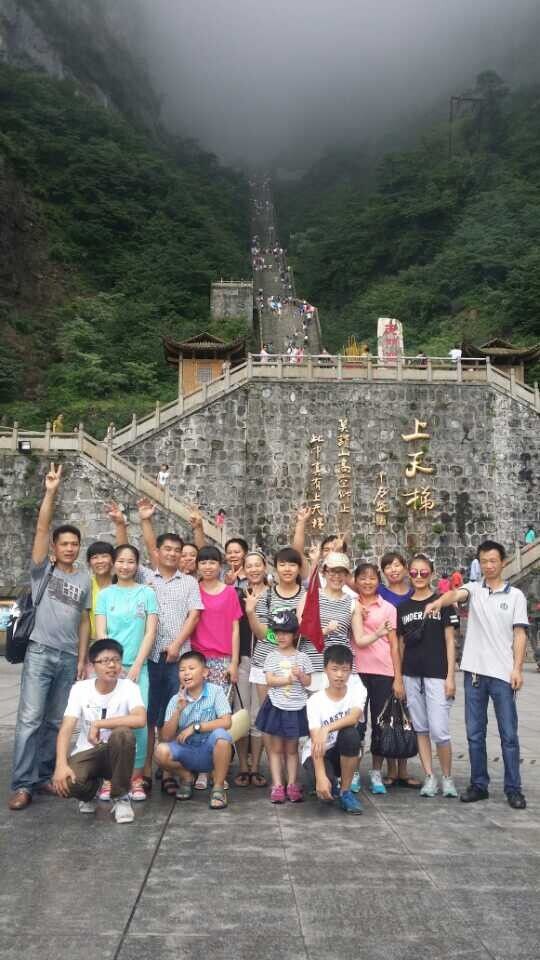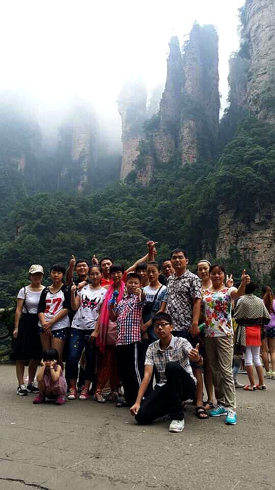 暑假和朋友商量着、趁着小孩假期间,带她们出来玩玩,最后决定了去—张家界。我们另外还组织了邻居朋友4家人,加上我们一家子共19个人,开了四辆车子。我们的具体行程是7月10日抵达张家界市区,7月10日—2日游玩张家界景区,因为09年报旅行社跟过团来张家界玩过一次,感觉像赶鸭子似的,而且当时带我们的导游在行程里面另外加了几个非常不好玩的景点,钱是花了很多,但是玩的也很不开心。所以这次是找的是朋友极力推荐的当地专门做自助游的导游小陈安排我们的吃、住、行。