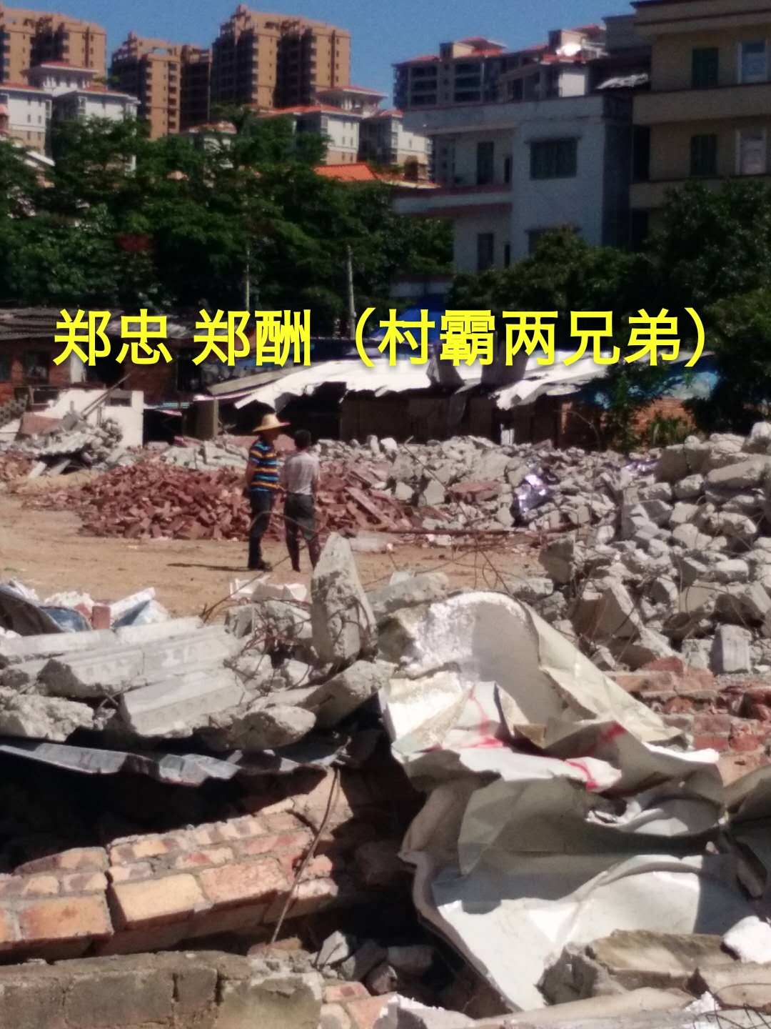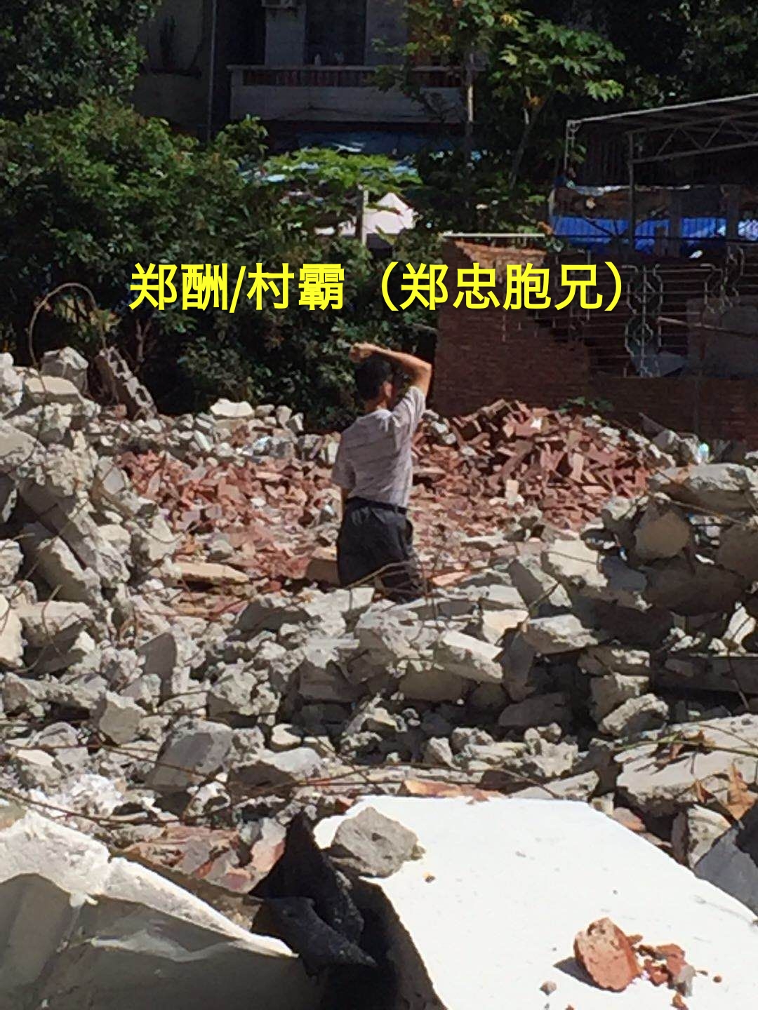 郑酬夫妇相对较弱,由始至终都是跟着郑忠他们摆尾,之前以为逃过一劫不会被拆,还嘲笑村民有本事就拆他们,估计是郑忠等村霸给了他们勇气怂恿他两挑衅村民。当挖掘机铁斗伸向他违建屋顶时候,郑酬夫妇落泪哭泣了。第二轮强拆完后,剩下的二十余亩废墟,堆的满满的建筑垃圾,还有一些残余的占地违建,一直得不到处理。水东镇相关领导似乎没有当初那么上心,村民能继续走在维权路上。如今银侨公司环卫工把垃圾车都往广隆岭宅基地里面放,外界看到那里是片废墟都偷偷夜里运送垃圾来里面倒,外表死人的东西都拿来那里扔。当初水东镇林书记答应广隆岭村民强拆完违建会清走建筑垃圾还原地貌,后来林书记出事换了新一哥,执政作风一切变样。