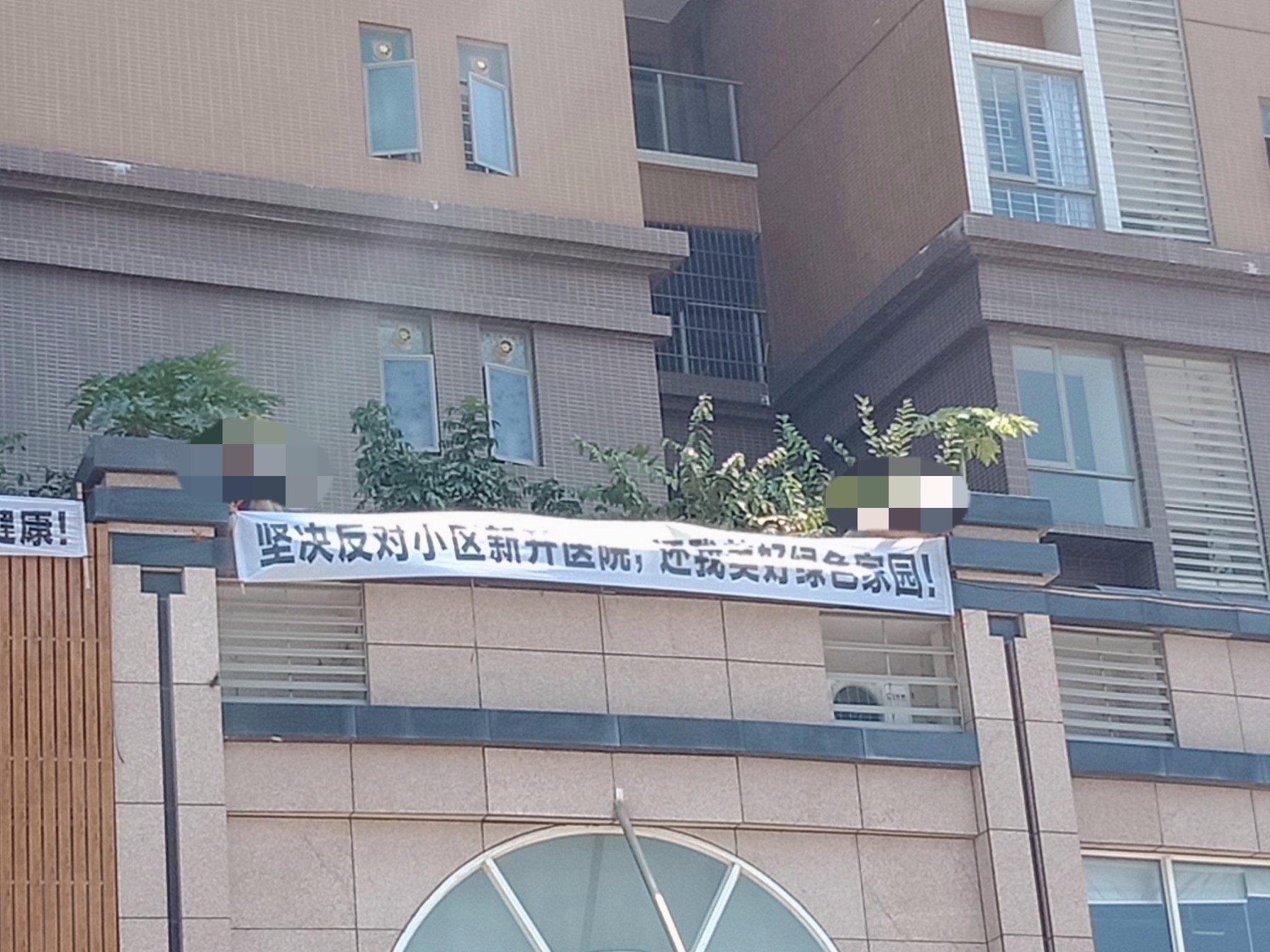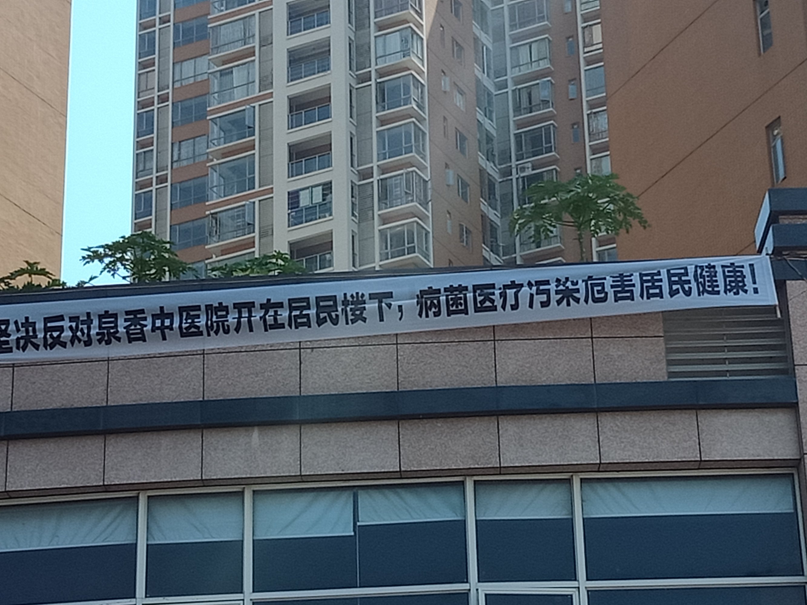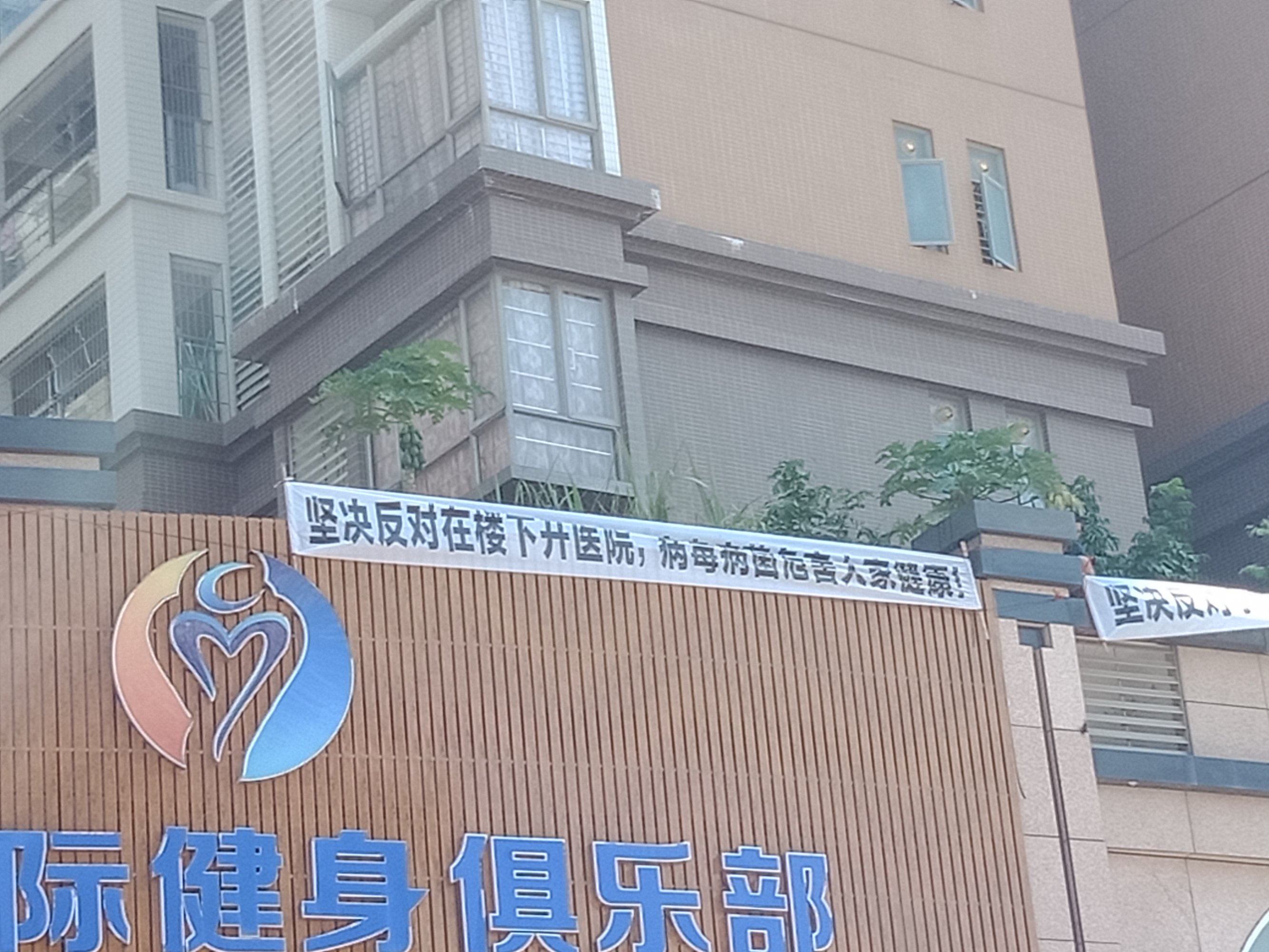 貌似看了横幅像是抗议反对在此铺面搅什么医院~