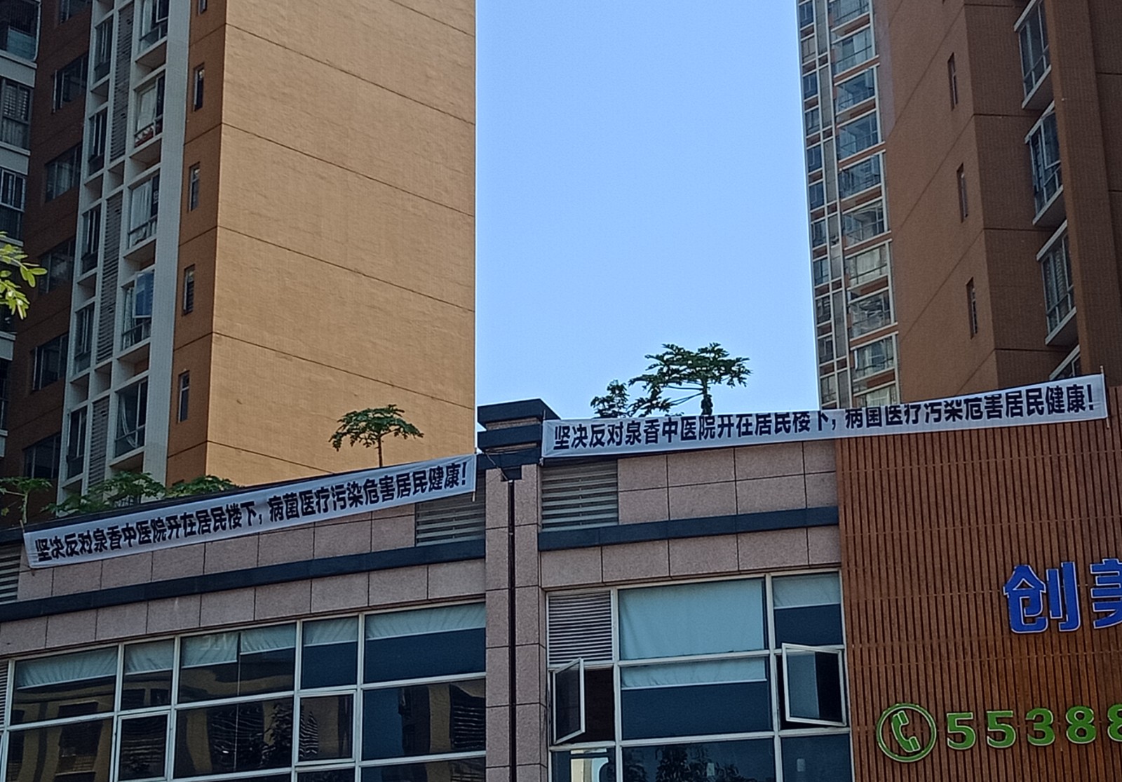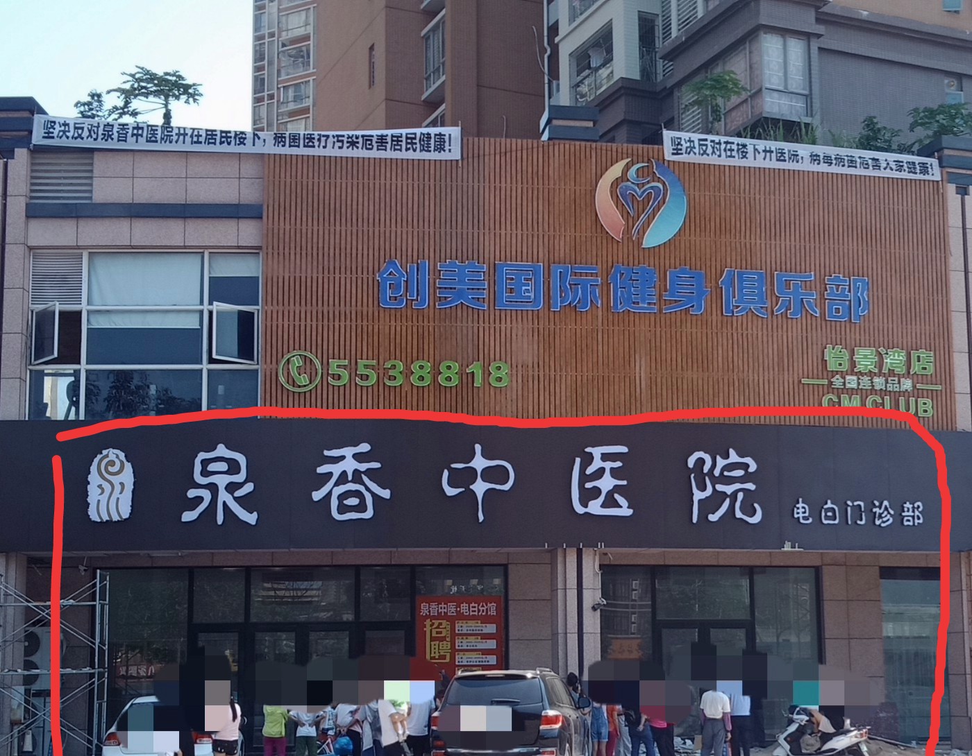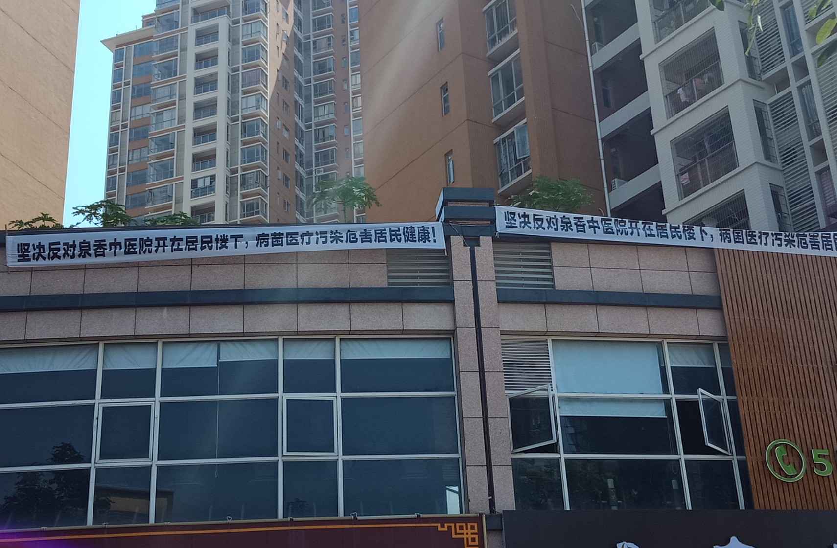 貌似看了横幅像是抗议反对在此铺面搅什么医院~