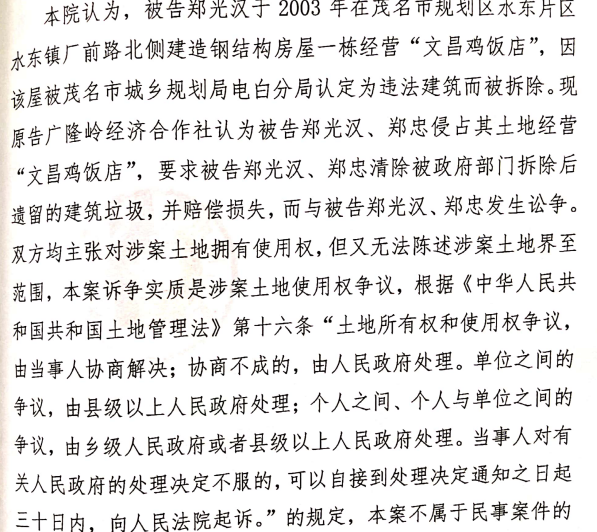 看你材料中显示判定为土地使用权纠纷,那意思就是证明不了地是谁的就能驳回非物权纠纷起诉,看来会玩法律手段很重要。话说回来,今年还有抗议活动看吗?