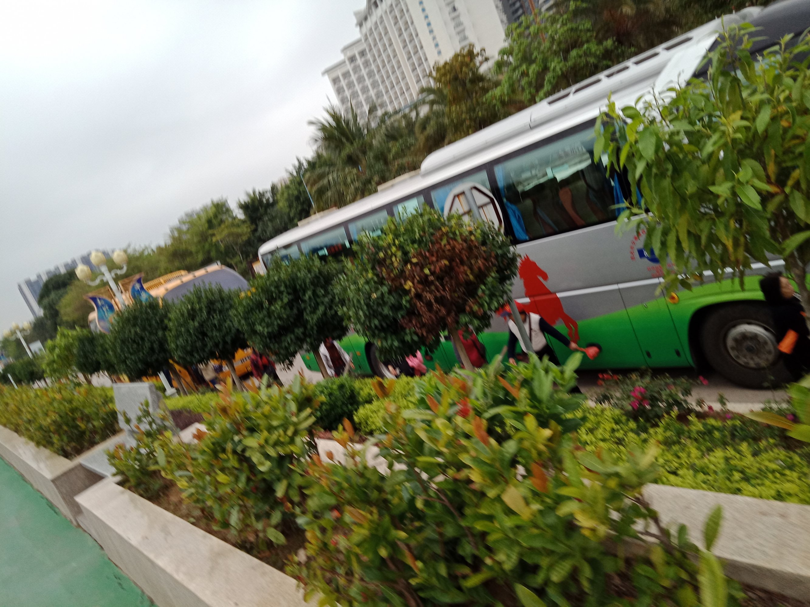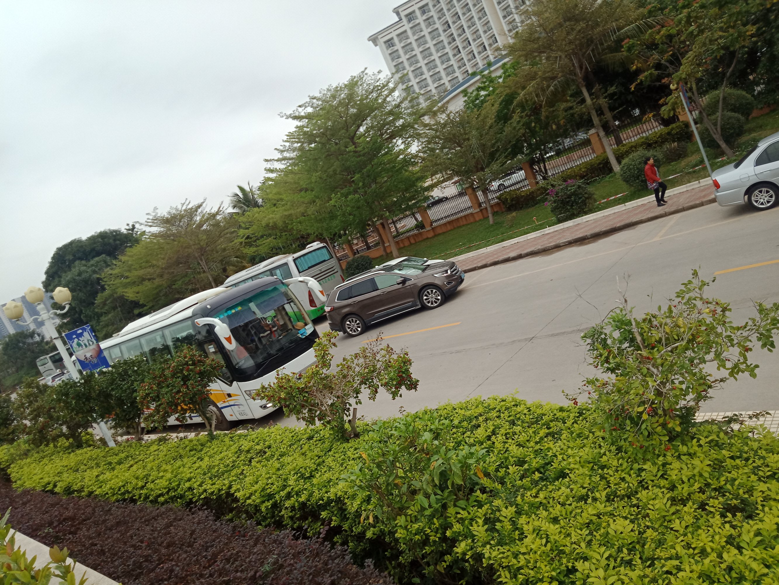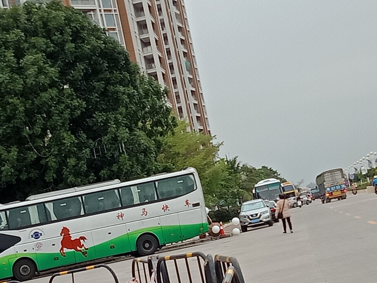 又陆续有零星大巴开进~