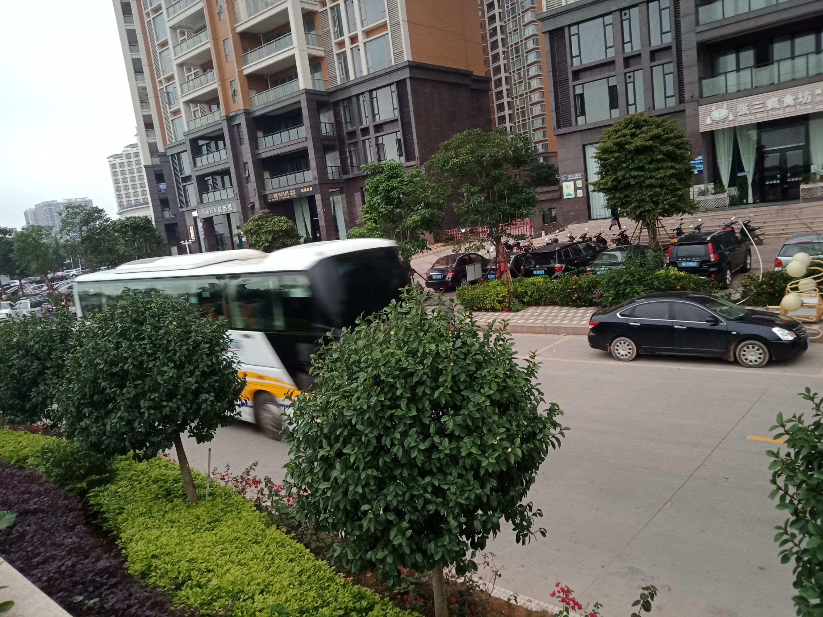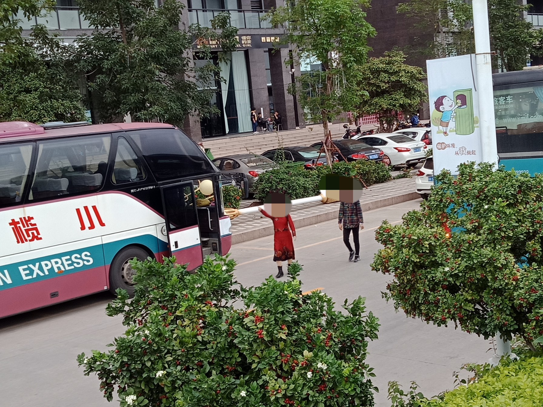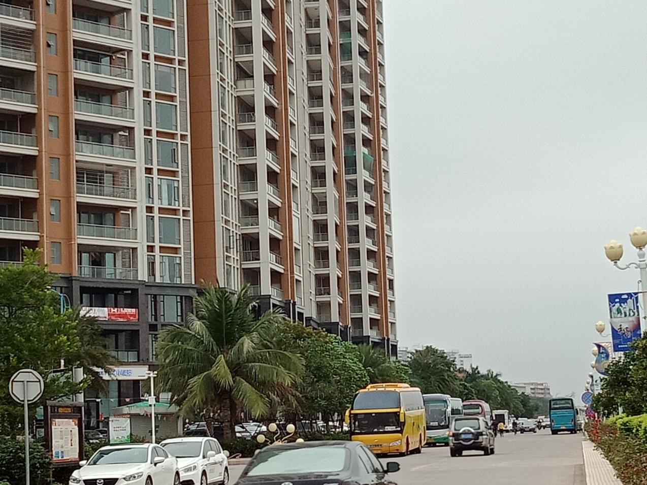 又陆续有零星大巴开进~