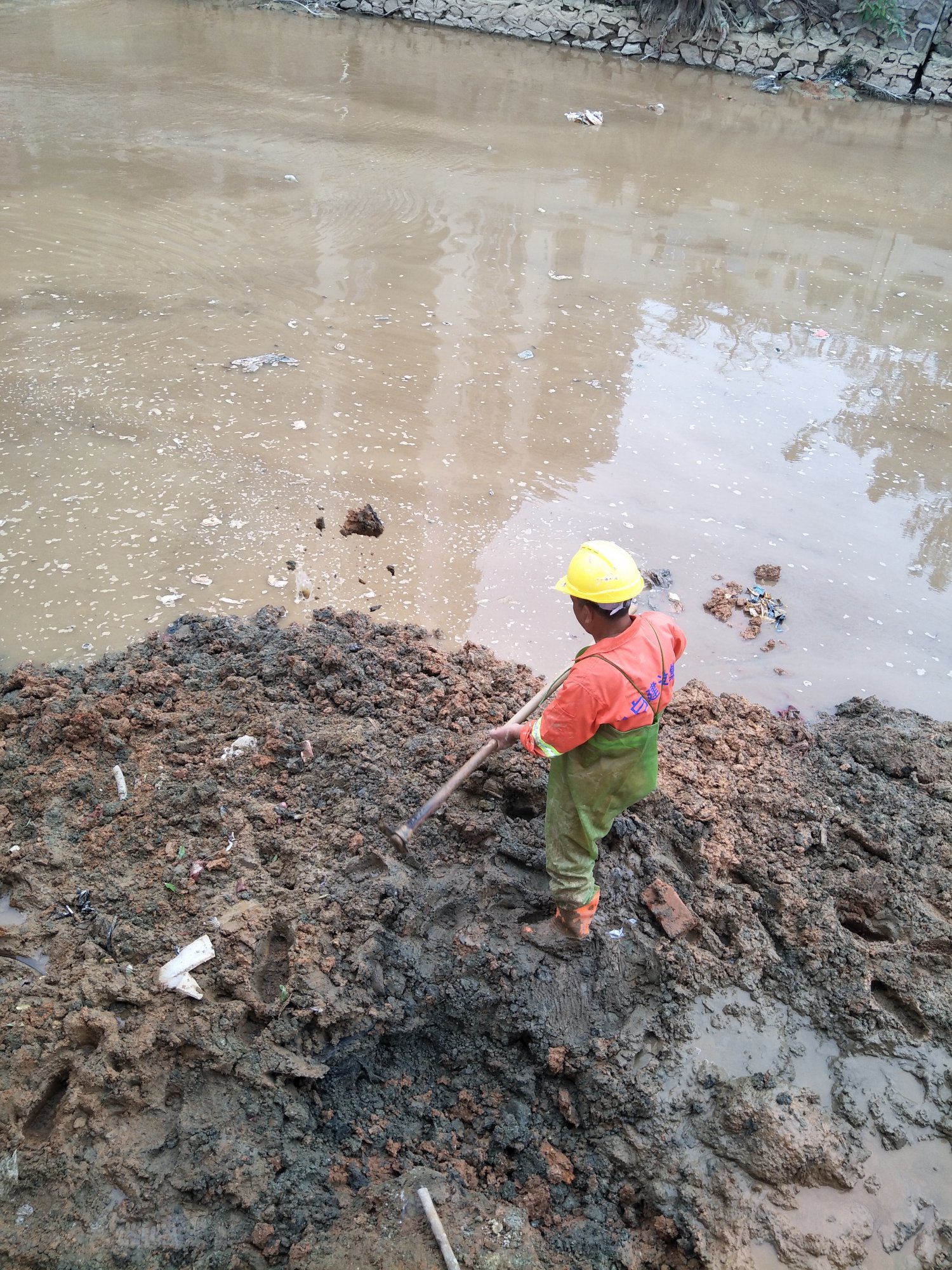 高出水面的直接叫两个工人搞平点让水冲走就算了。奇葩施工队好任性。