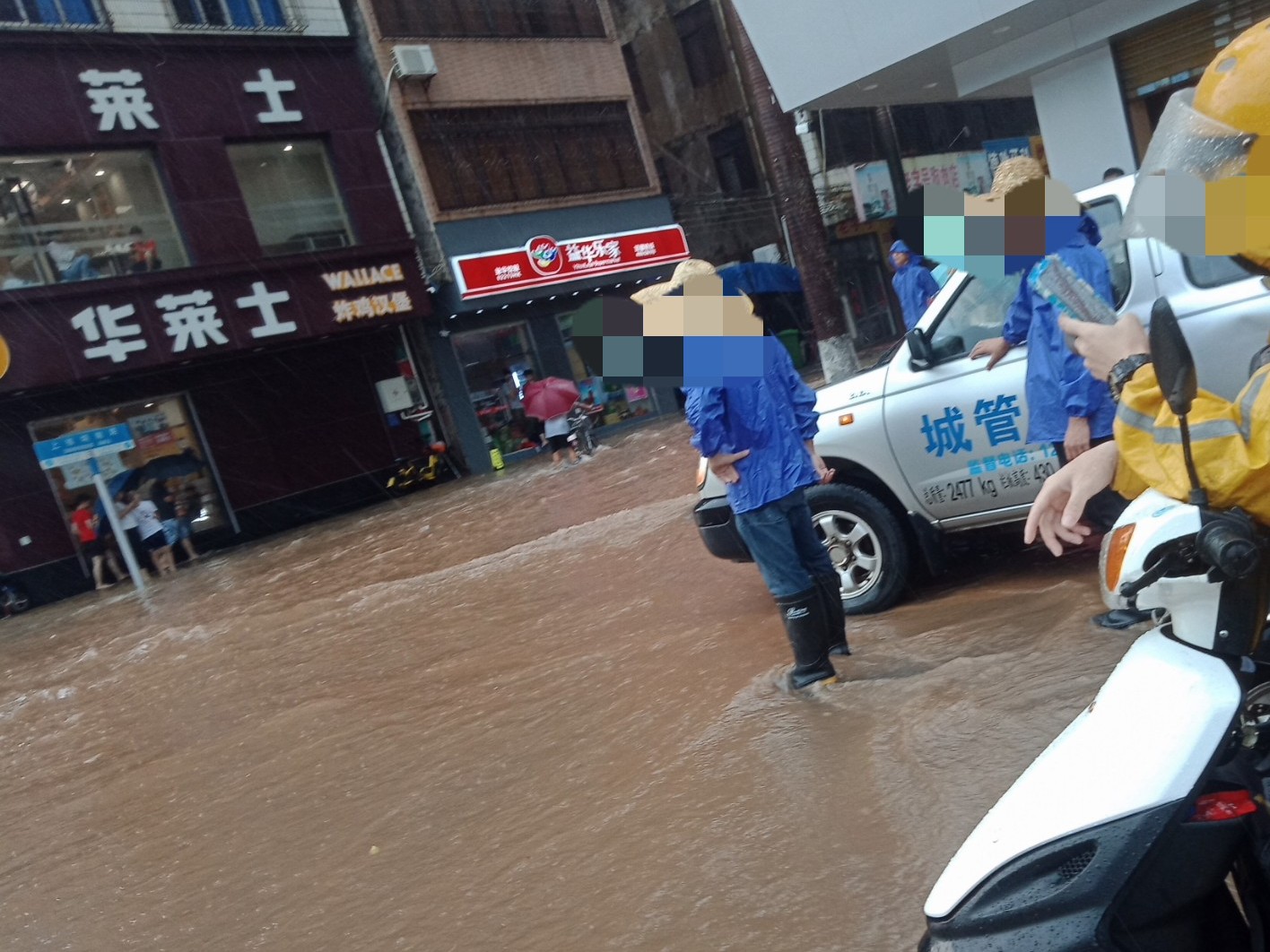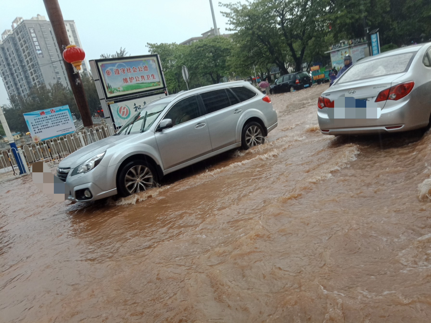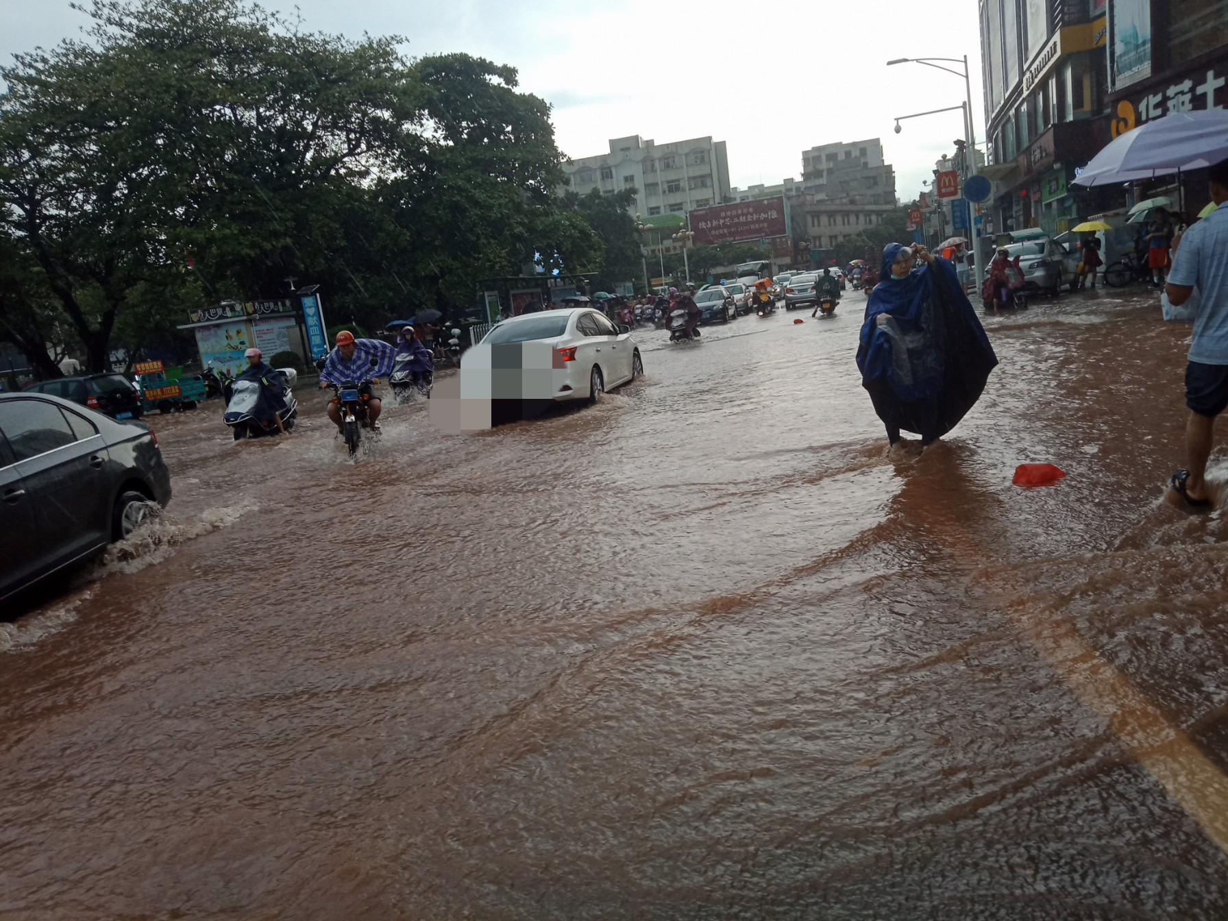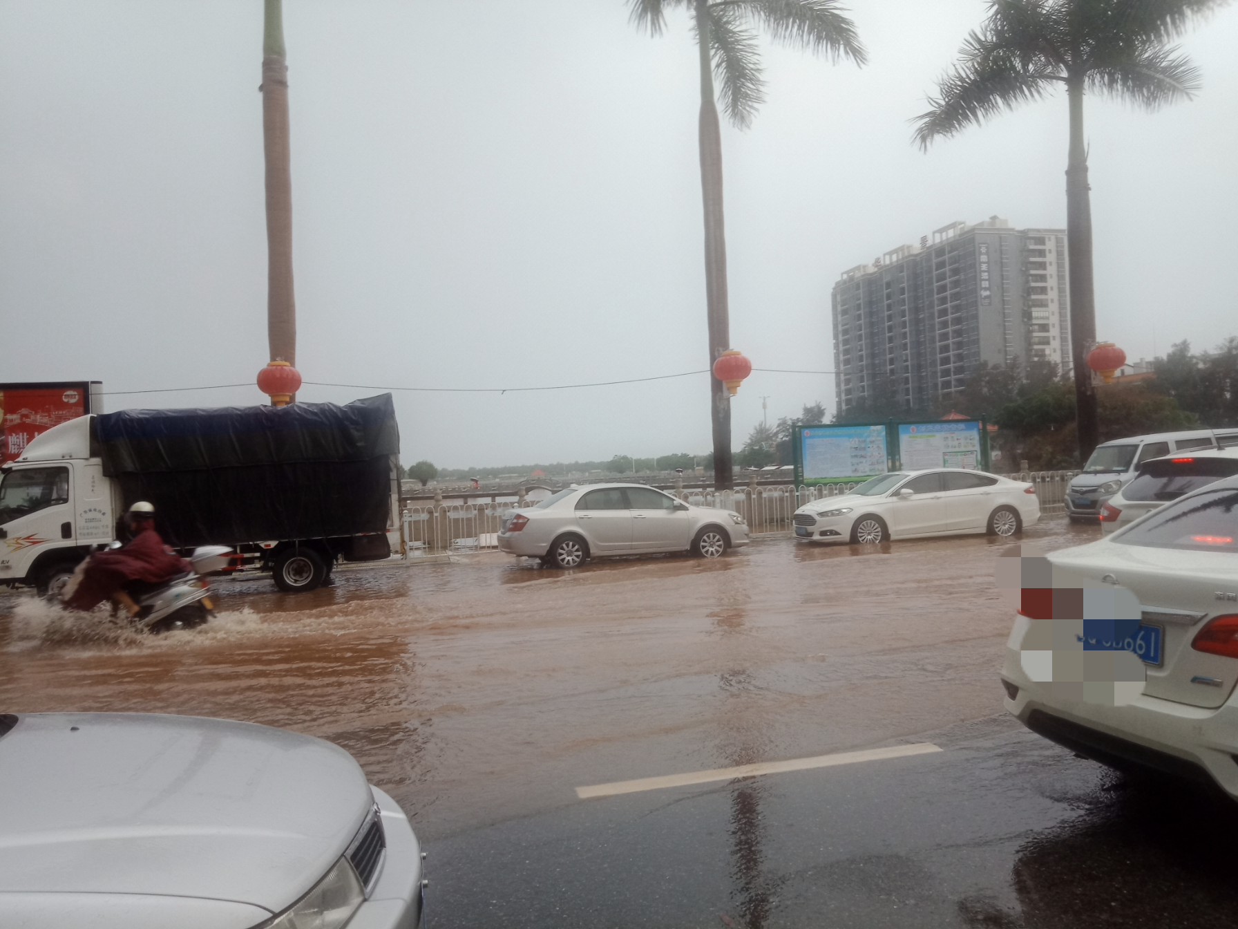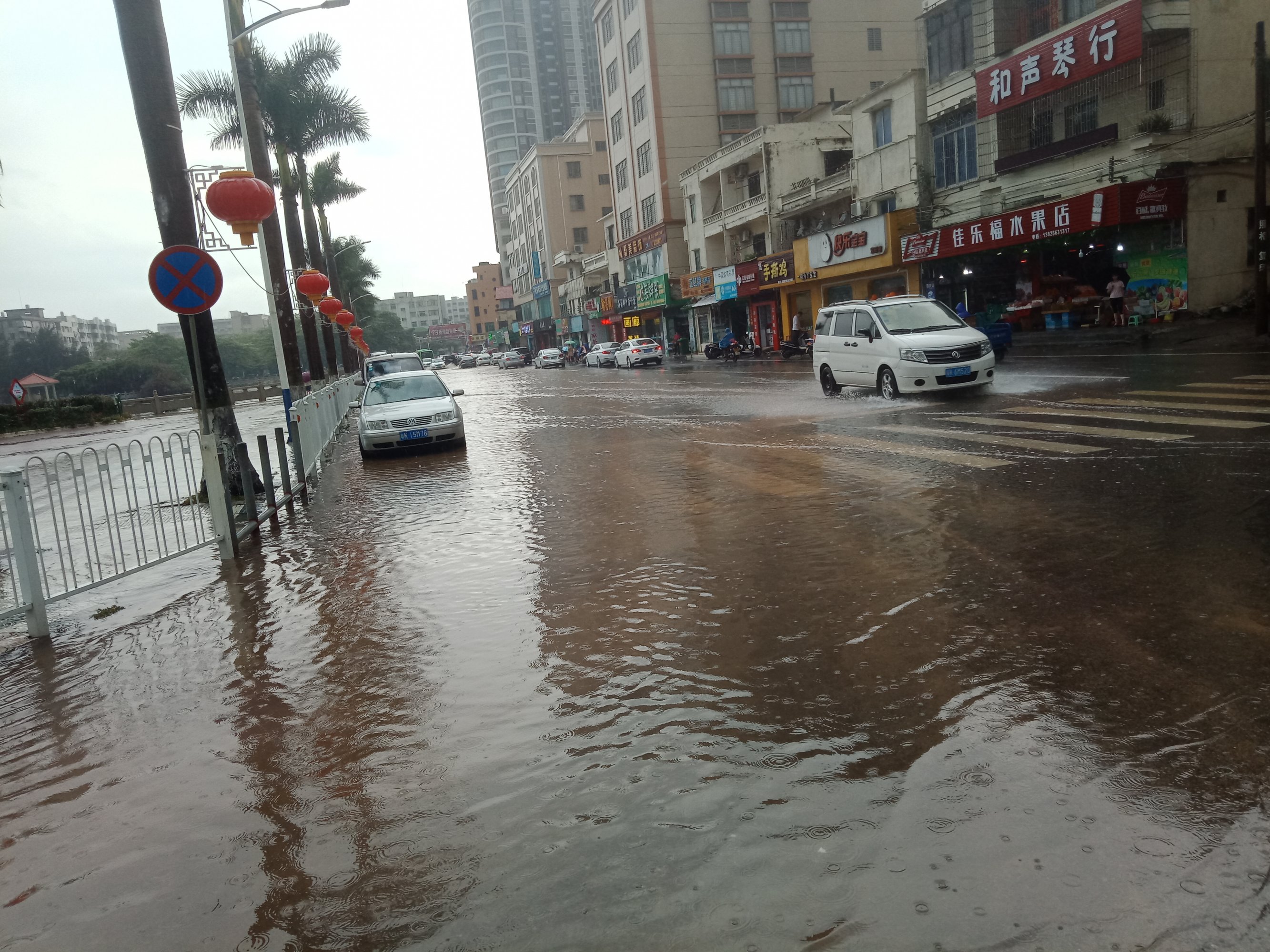 雨势有点滴大,希望不要持续太久~见有城监市政出入~有些黑点的地方停放的车开上高处或别处,如遇有积水不明深度的地方,别强行通过,掉头选走另些路、特汽车一死火推不动的,摩托还勉强可推走(不过最好别强行通过有深水不明的地方,特有急流雨河水的地方,千万不要呈强通过,易给水冲倒冲走~不过有些人都不上这的,但求醒目的,别呈强)~