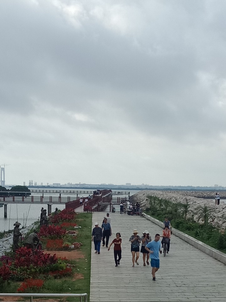 今早又去海堤晨运,见远处有游巴搭乘着尊敬的游客们!,特又跟随想问下,又是有些向亲水平台直行,而又有些走向观鹭阁,瓦随去观鹭阁那边,一路听他她们有说有笑,很多地方语言(但我都貌似听得懂哦:biggrin:),跟到那观鹭阁旁那条石阶路,刚想问下他她们从哪来的,这时有两位晨跑者停下来问了他她们从哪里过来的?,其中他她们中有个男的回答,说他她们是从中山那边过来的,另外的说是佛山.顺德那边来的,都说两天游,诂计还有些是各兄弟县市过来的尊爱游人游客?无论怎样,衷心欢迎您们的到来!大家互相交流!!
